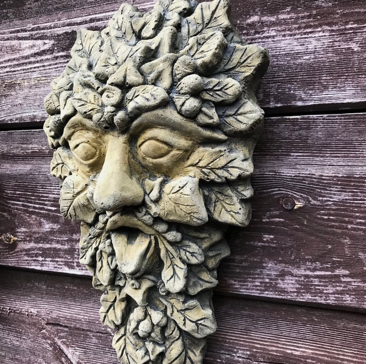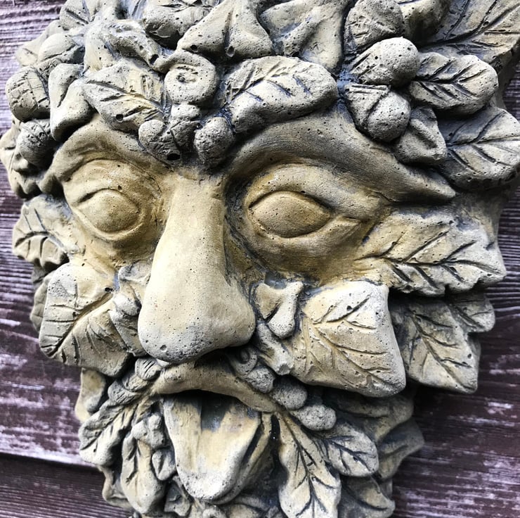 Each of our Green Man masks are hand cast at our Sussex workshop in frost proof reconstituted stone with an aged green or sandstone colour finish.