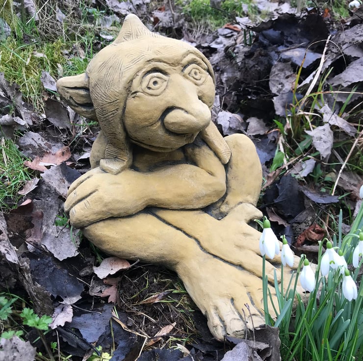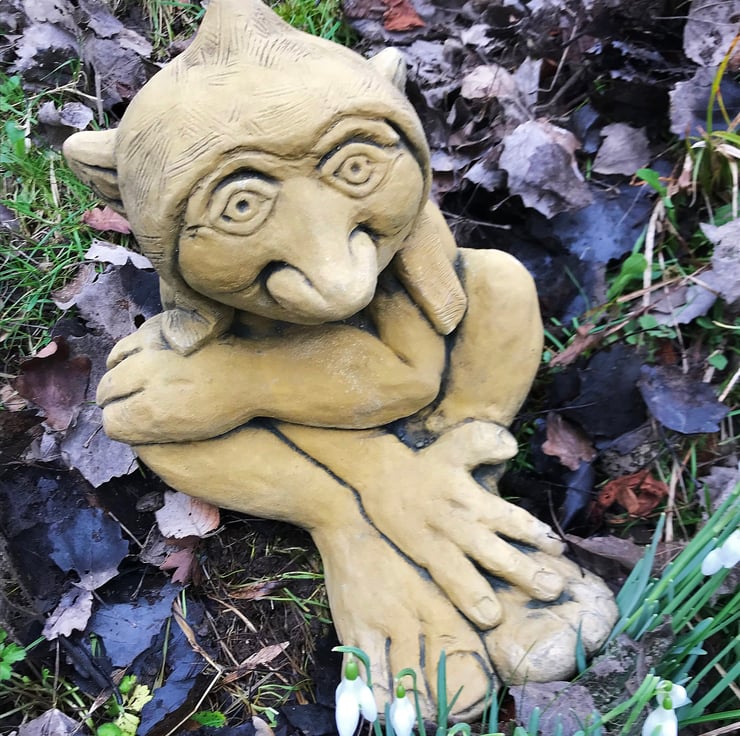 Each of our Big Nose Troll ornaments are hand cast at our Sussex workshop in frost proof reconstituted stone with an aged sandstone colour finish.