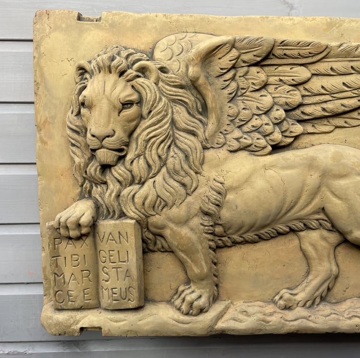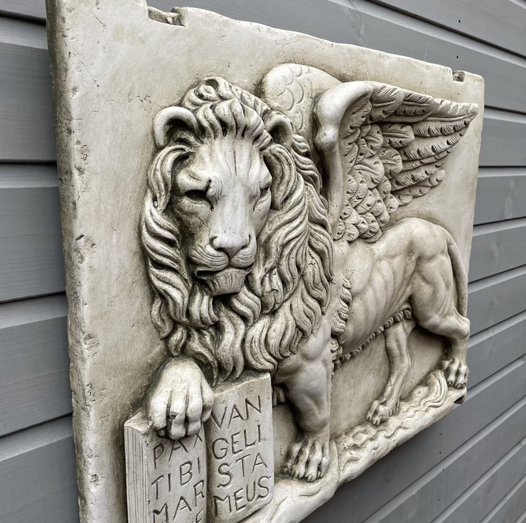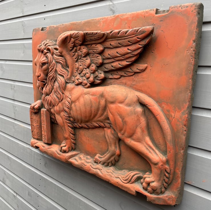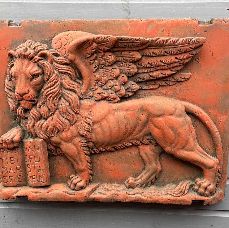 Each of our Venetian Lion plaques are hand cast at our Sussex workshop in frost proof reconstituted stone with an aged terracotta, white, bronze or sandstone colour finish.