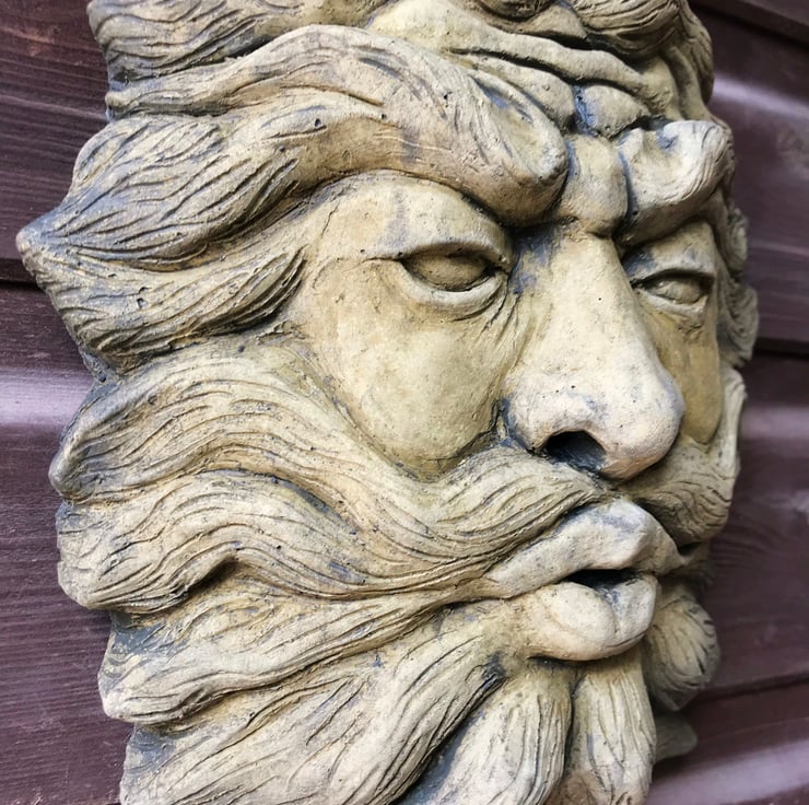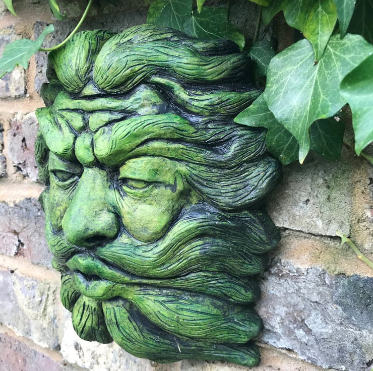 Each of our Green Man masks are hand cast at our Sussex workshop in frost proof reconstituted stone with an aged green or sandstone colour finish.