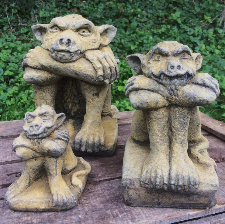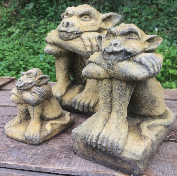 'Gremlin Family' Set of 3 decorative statues for the home or garden.