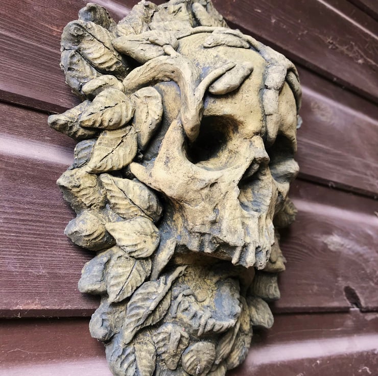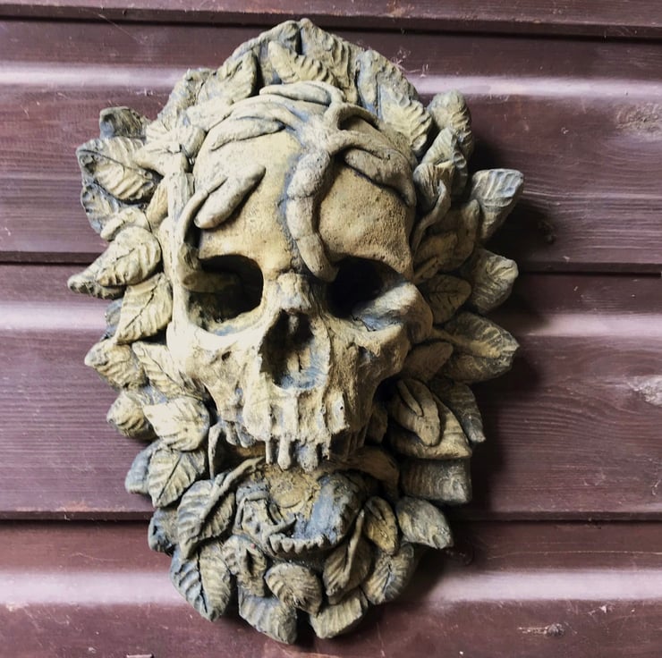 'Spirit Skull' Green Man decorative wall plaque and garden ornament.