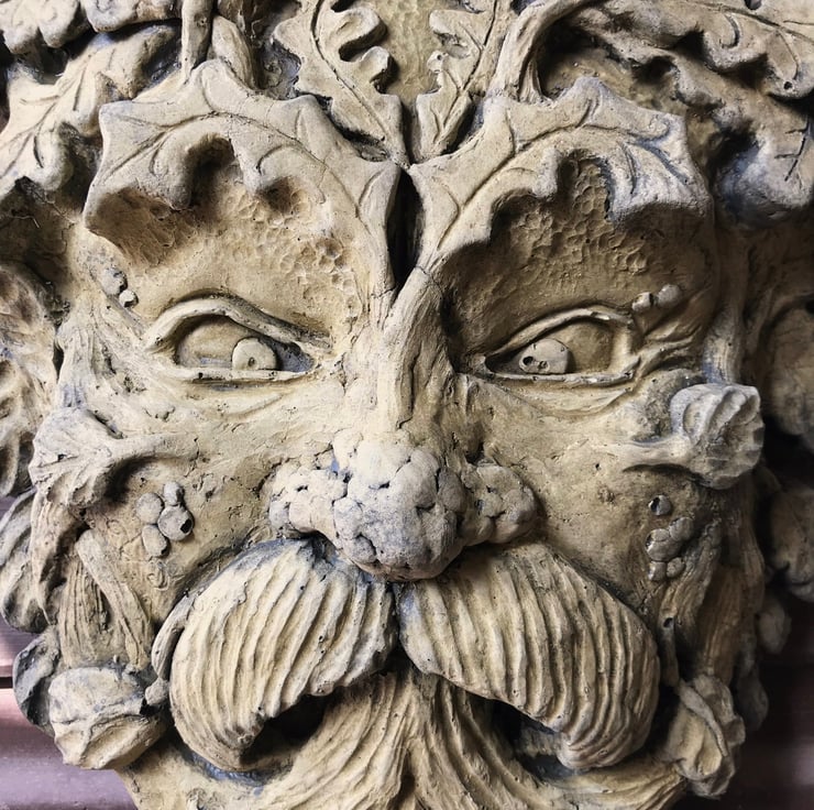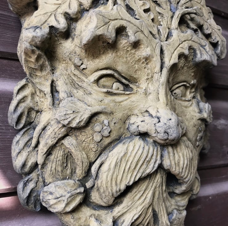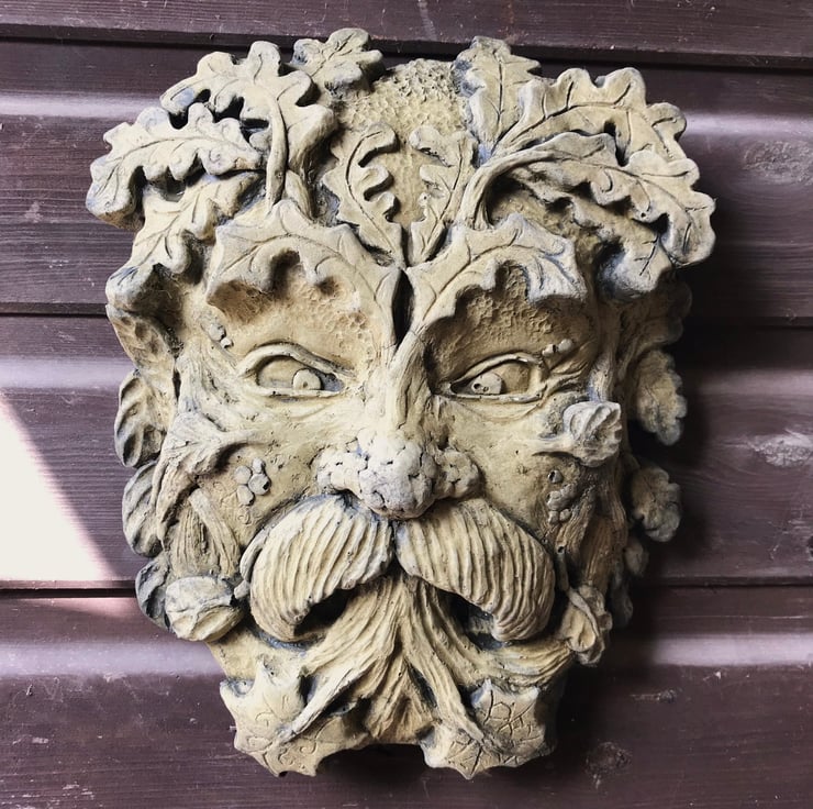 Each of our Green Man masks are hand cast at our Sussex workshop in frost proof reconstituted stone with an aged green or sandstone colour finish.