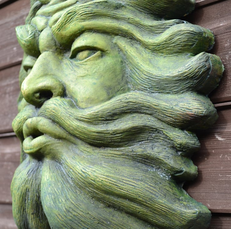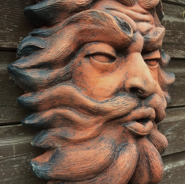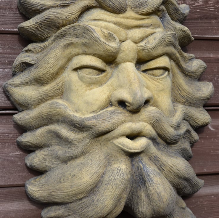 Each of our Green Man masks are hand cast at our Sussex workshop in frost proof reconstituted stone with an aged green or sandstone colour finish.