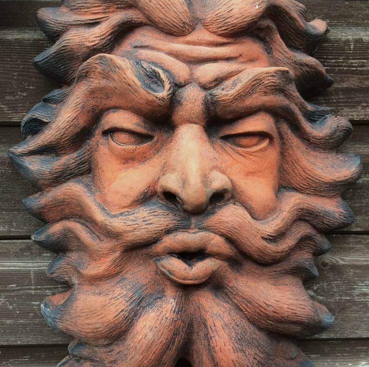 'Large North Wind' Green Man decorative wall plaque or fountain mask. Can be made with a hole for the fountain mask.