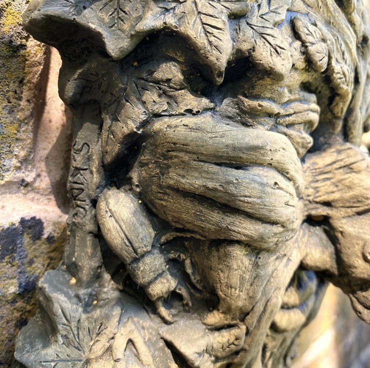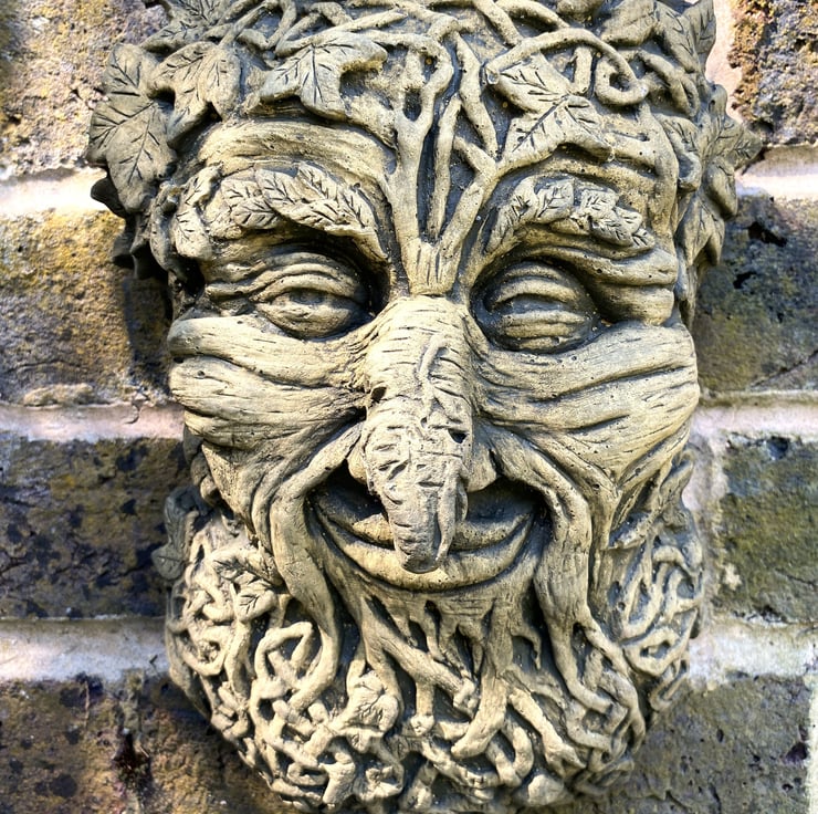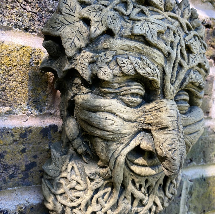 Each of our Green Man masks are hand cast at our Sussex workshop in frost proof reconstituted stone with an aged green or sandstone colour finish.