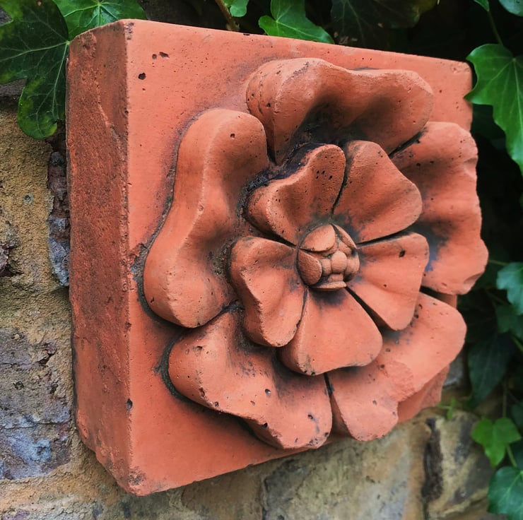Copy of an antique decorative brick, usually found on period buildings as an architectural detail, hand cast at our workshops in Sussex in frost proof reconstituted stone in aged terracotta colour