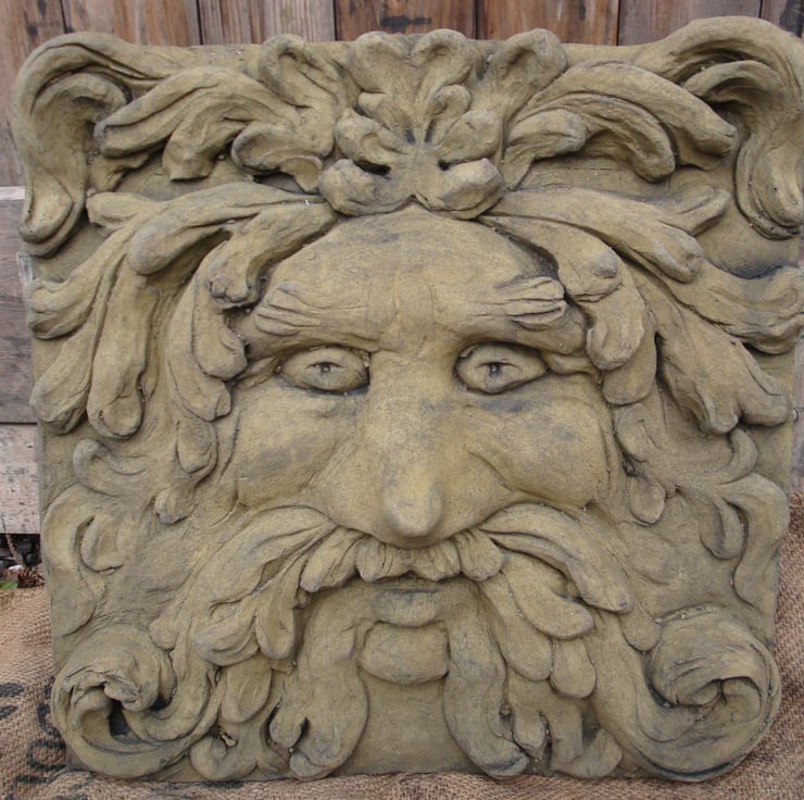 'Large Square' Green Man decorative wall plaque or fountain mask. Can be made with a hole for the fountain mask.