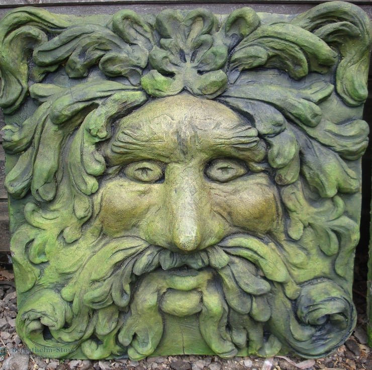 Each of our Green Man masks are hand cast at our Sussex workshop in frost proof reconstituted stone with an aged green or sandstone colour finish.