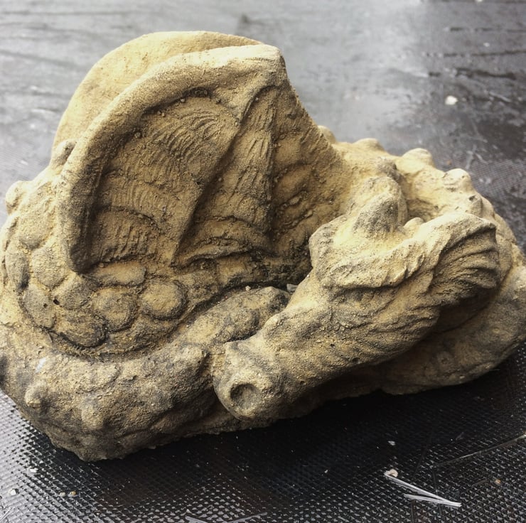 Each of our Spike Dragon ornaments are hand cast at our Sussex workshop in frost proof reconstituted stone with an aged green, terracotta or sandstone colour finish.
