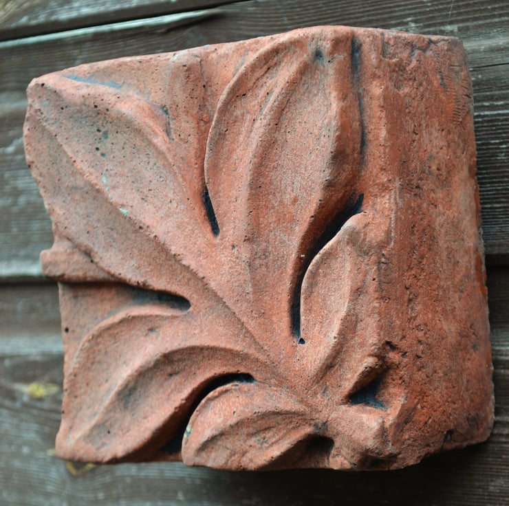 Copy of an antique decorative brick, usually found on period buildings as an architectural detail, hand cast at our workshops in Sussex in frost proof reconstituted stone in aged terracotta colour
