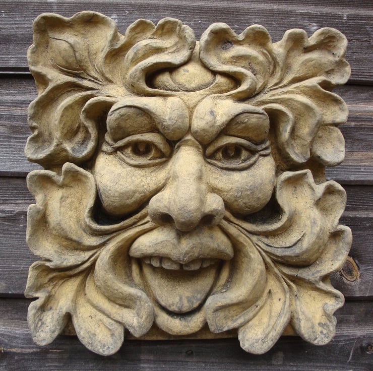 Each of our Green Man masks are hand cast at our Sussex workshop in frost proof reconstituted stone with an aged green or sandstone colour finish.