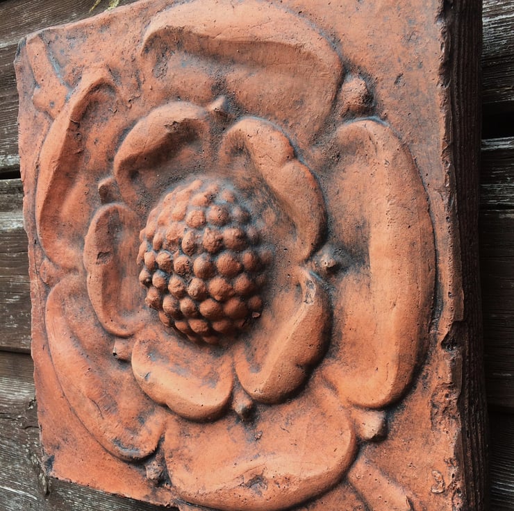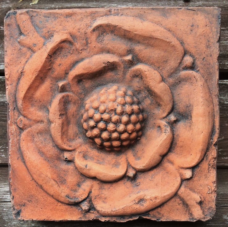 Copy of an antique decorative brick, usually found on period buildings as an architectural detail, hand cast at our workshops in Sussex in frost proof reconstituted stone in aged terracotta colour