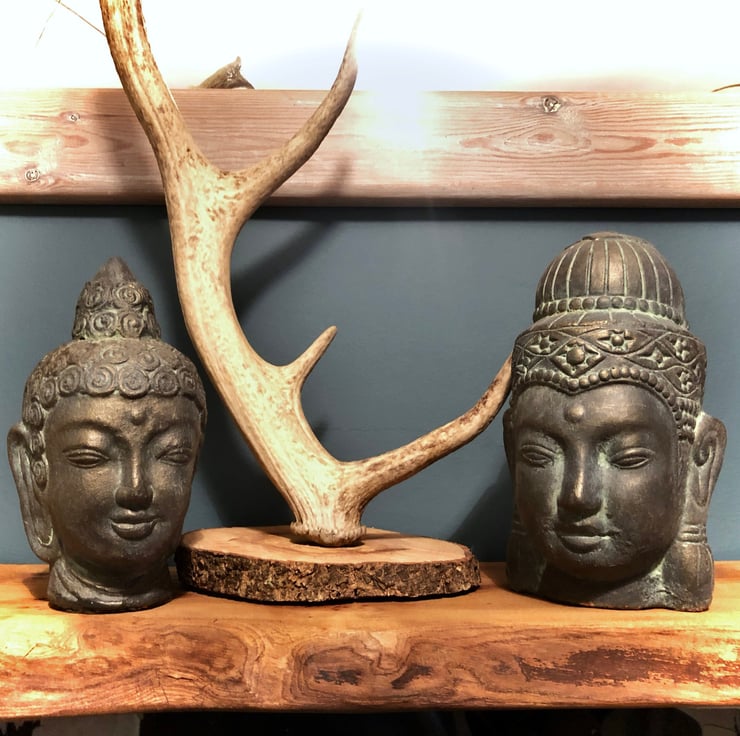 'Knowledge and Wisdom' - Pair of Buddha Head decorative home or garden ornaments.