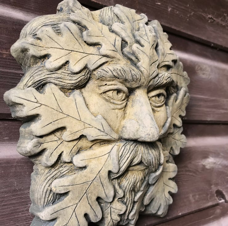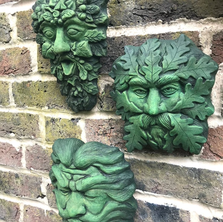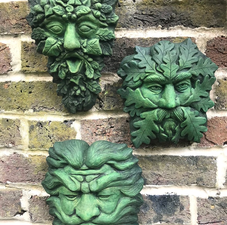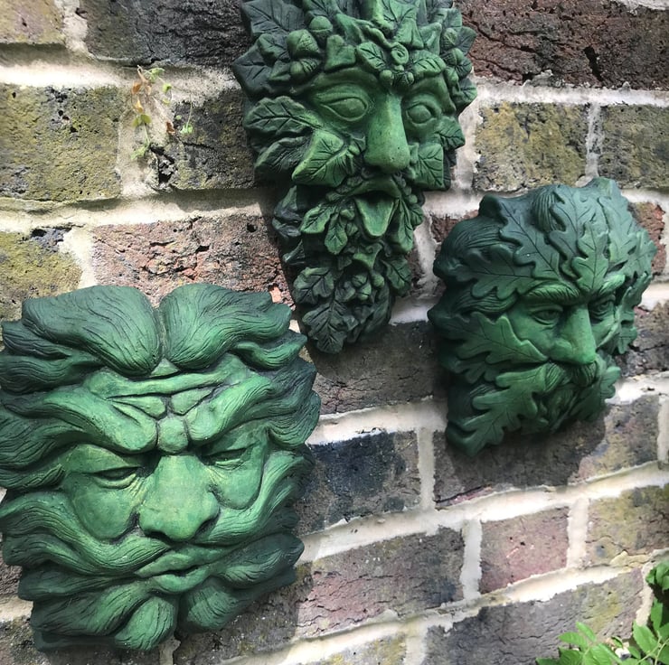 'Gaelic' Set of 3 Green Man wall plaques and garden ornaments.
