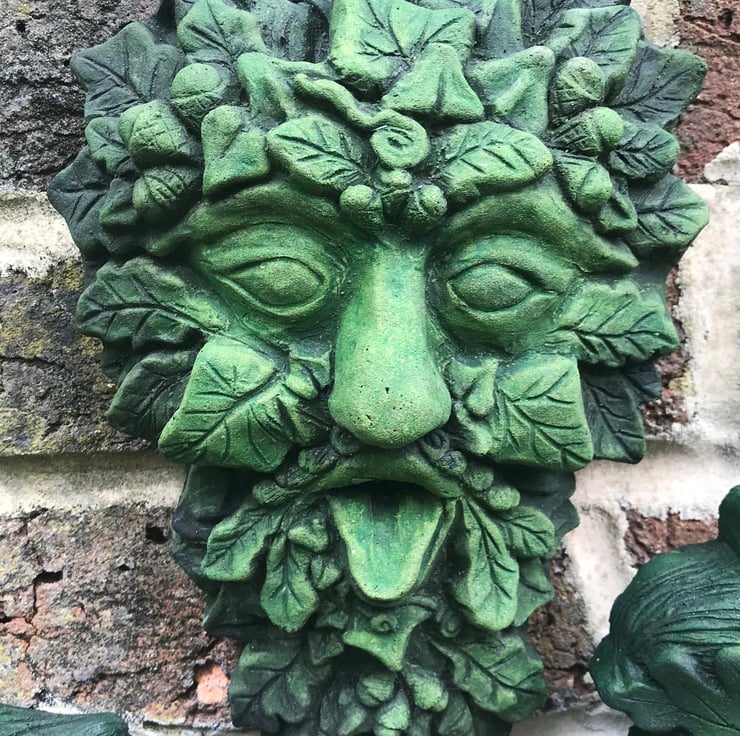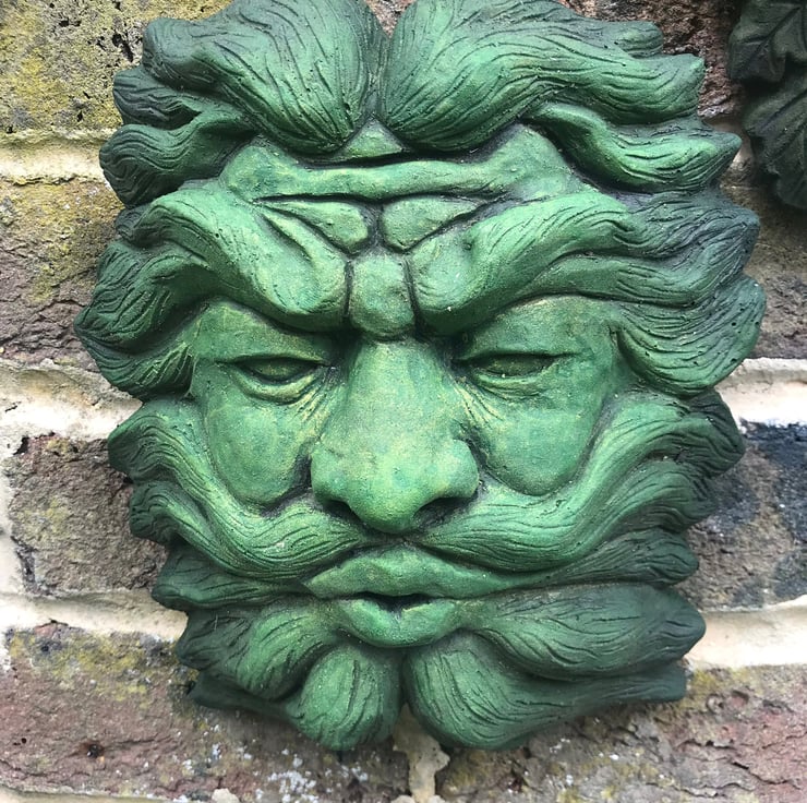 Each of our Green Man masks are hand cast at our Sussex workshop in frost proof reconstituted stone with an aged green or sandstone colour finish.
