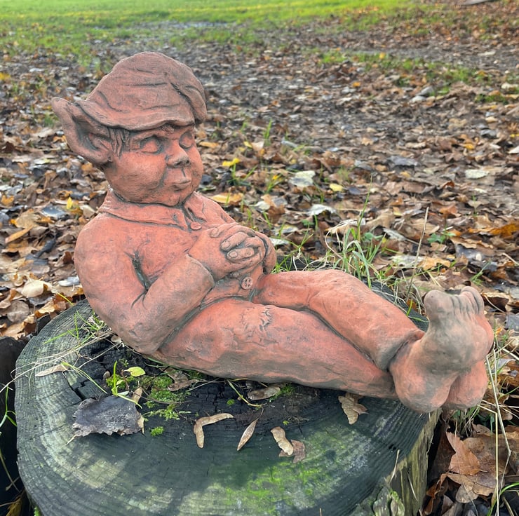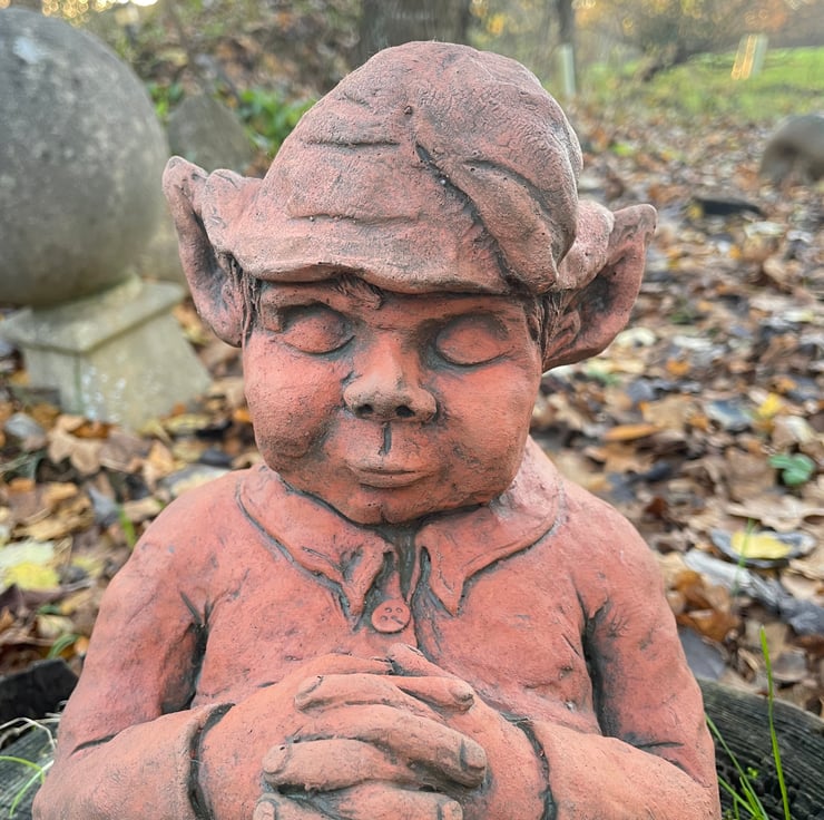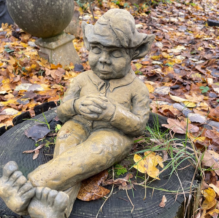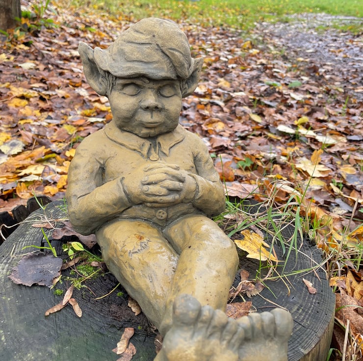 Each of our Otto Pixie Ornaments are hand cast at our Sussex workshop in frost proof reconstituted stone with an aged terracotta or sandstone colour finish.