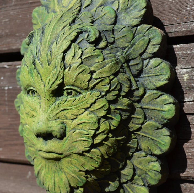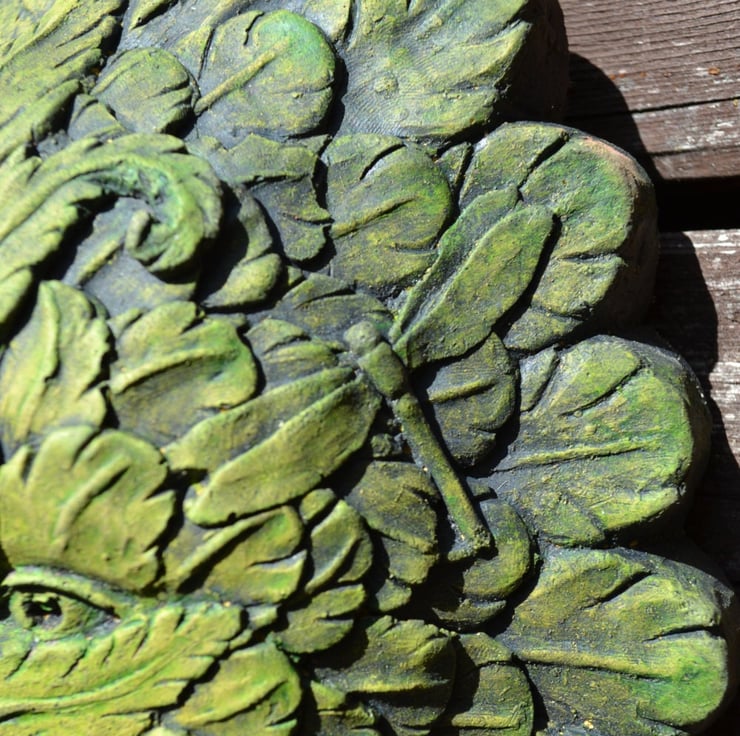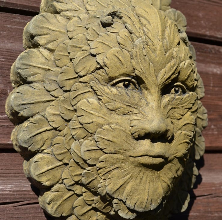 Each of our Green Man masks are hand cast at our Sussex workshop in frost proof reconstituted stone with an aged green or sandstone colour finish.