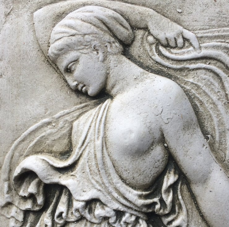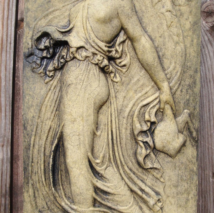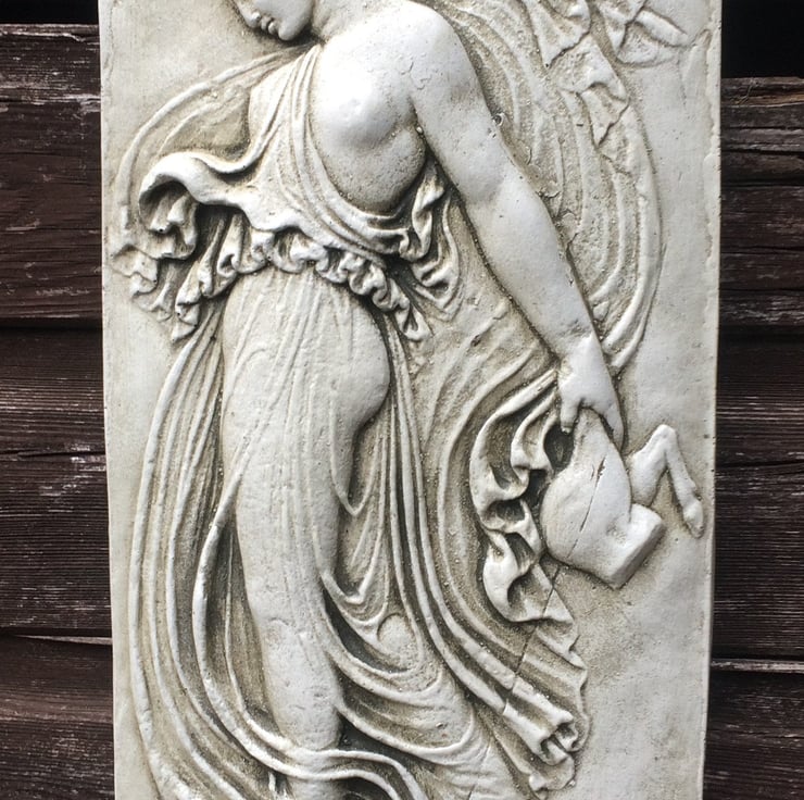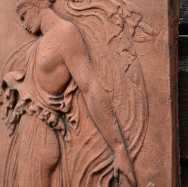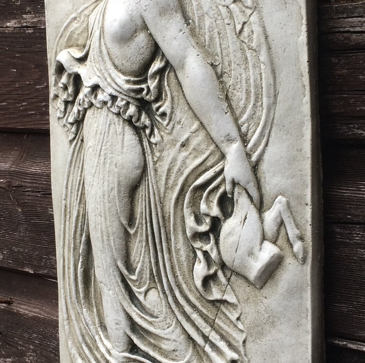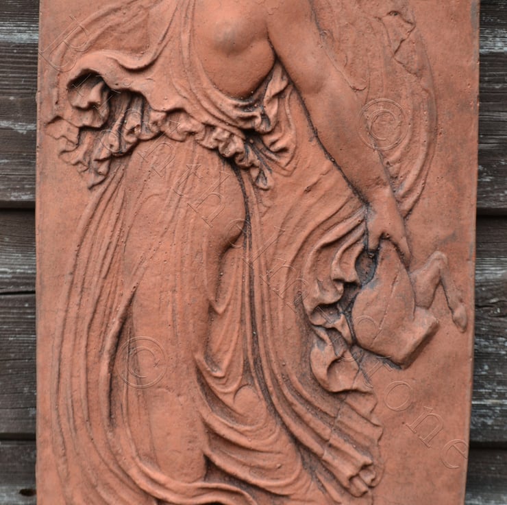 Each of our Maenad plaques are hand cast at our Sussex workshop in frost proof reconstituted stone with an aged sandstone, terracotta or white colour finish.