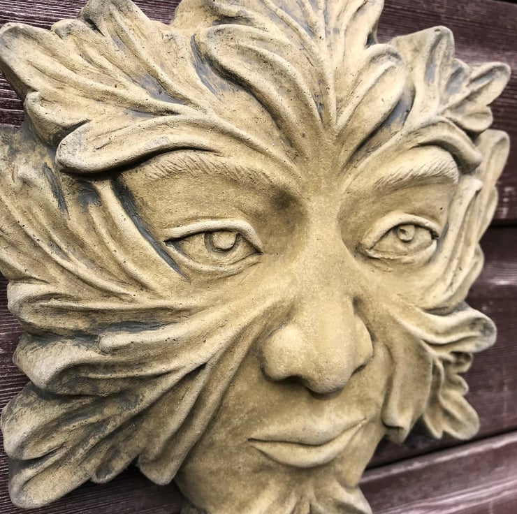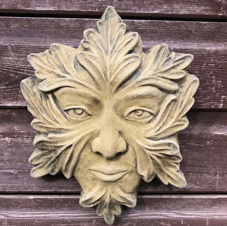 Each of our Green Man masks are hand cast at our Sussex workshop in frost proof reconstituted stone with an aged green or sandstone colour finish.