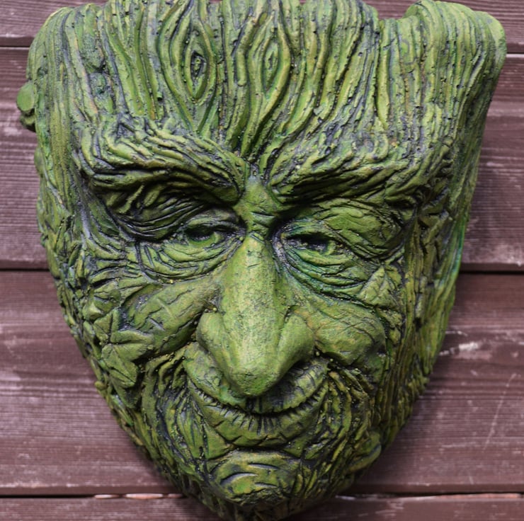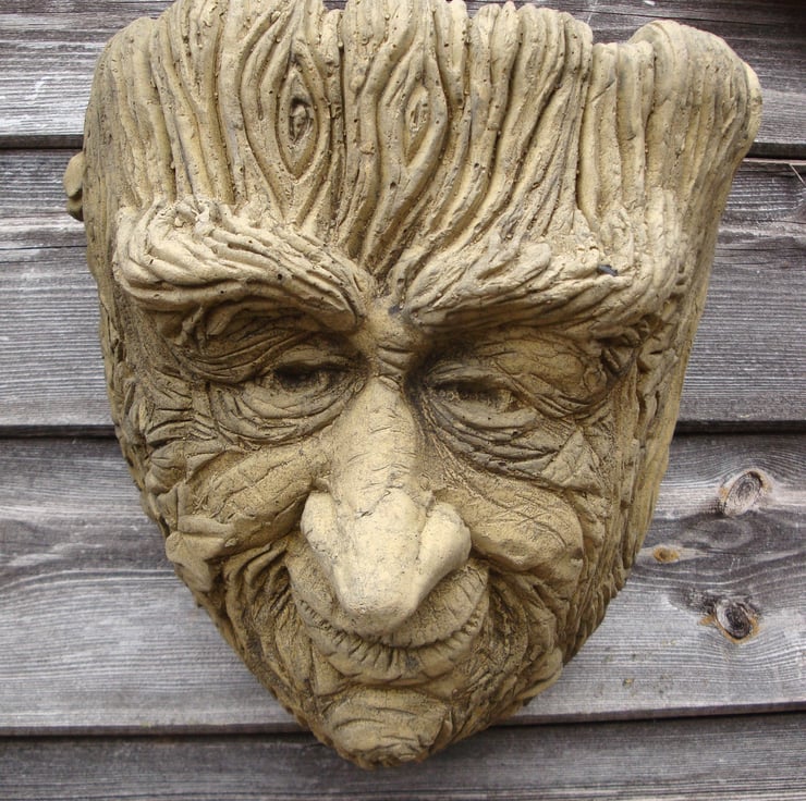 'Old Rye' Green Man wall planter, decorative stone wall plaque and garden ornament.