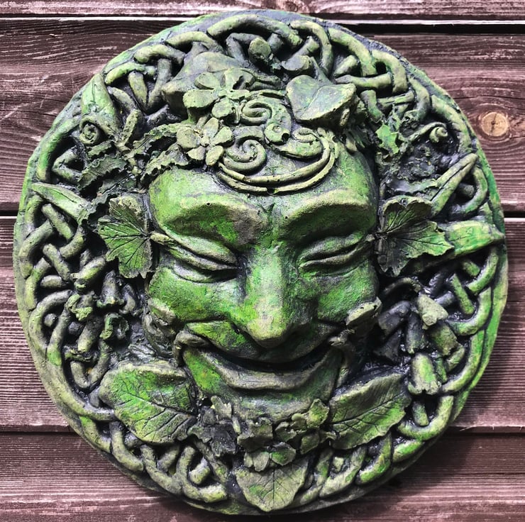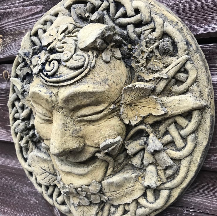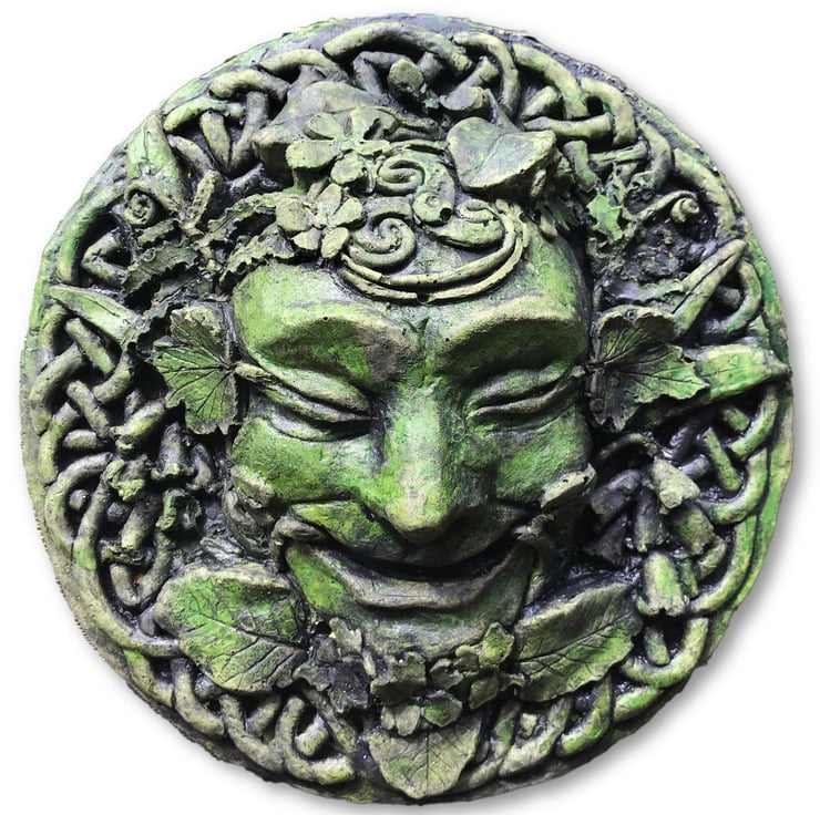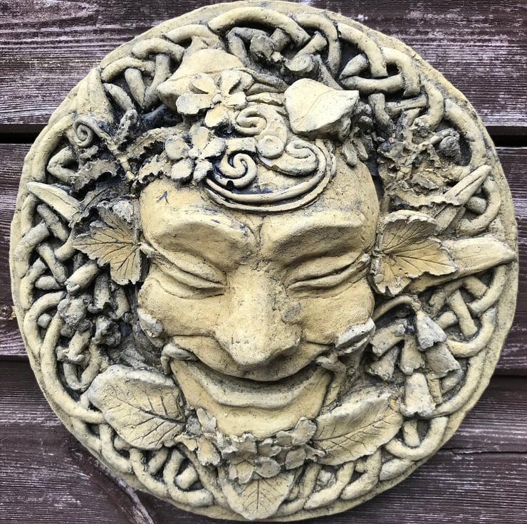 'Spring' Celtic Green Man wall plaque and garden ornament. Part of our "Four Seasons" Green Man plaque collection.