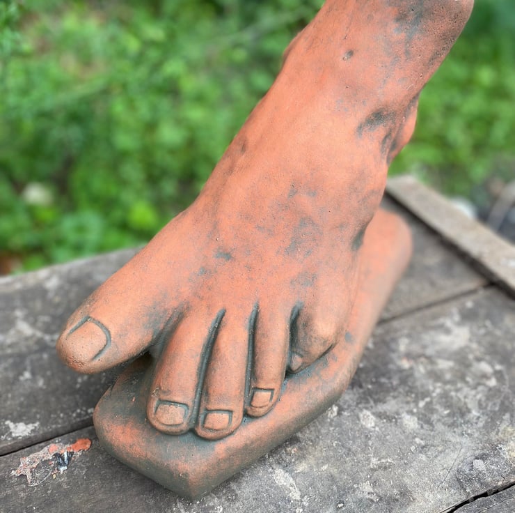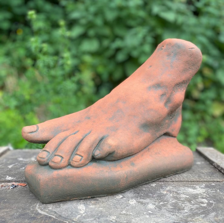 Each of our Classical Foot ornaments are hand cast at our Sussex workshop in frost proof reconstituted stone with an aged terracotta, bronze or sandstone colour finish.