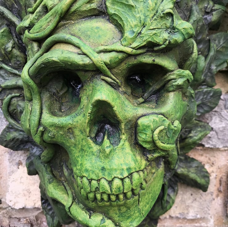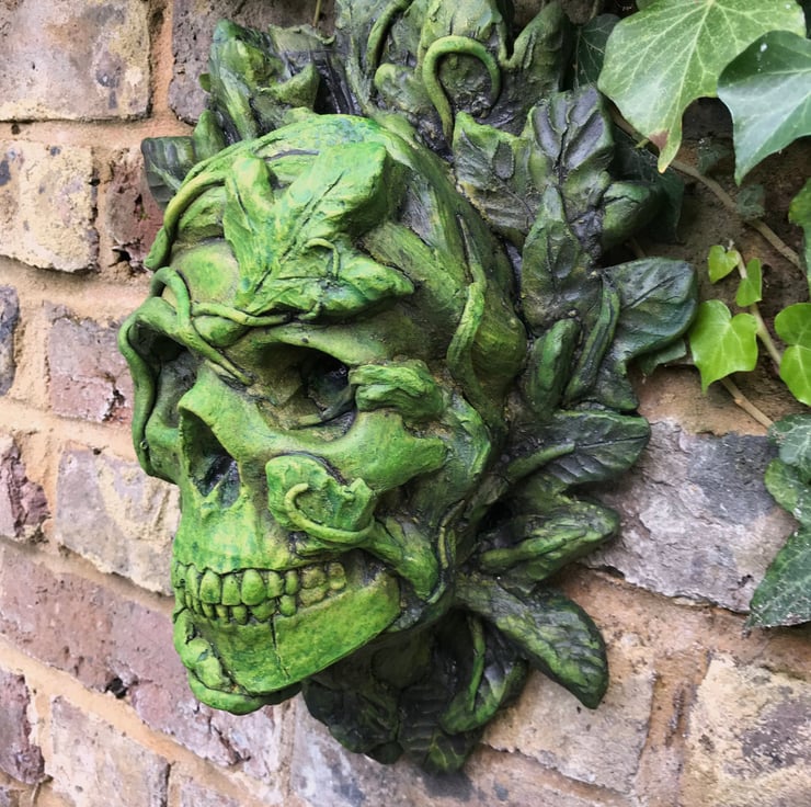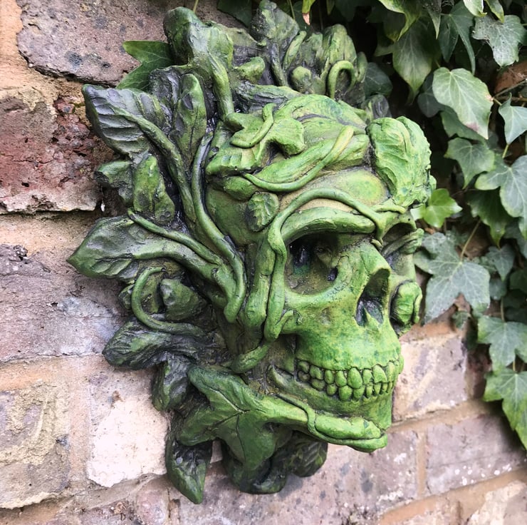 Each of our Green Man masks are hand cast at our Sussex workshop in frost proof reconstituted stone with an aged green or sandstone colour finish.