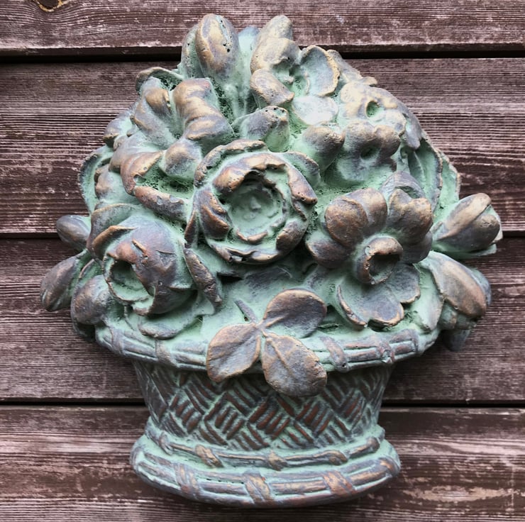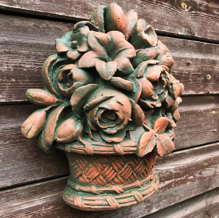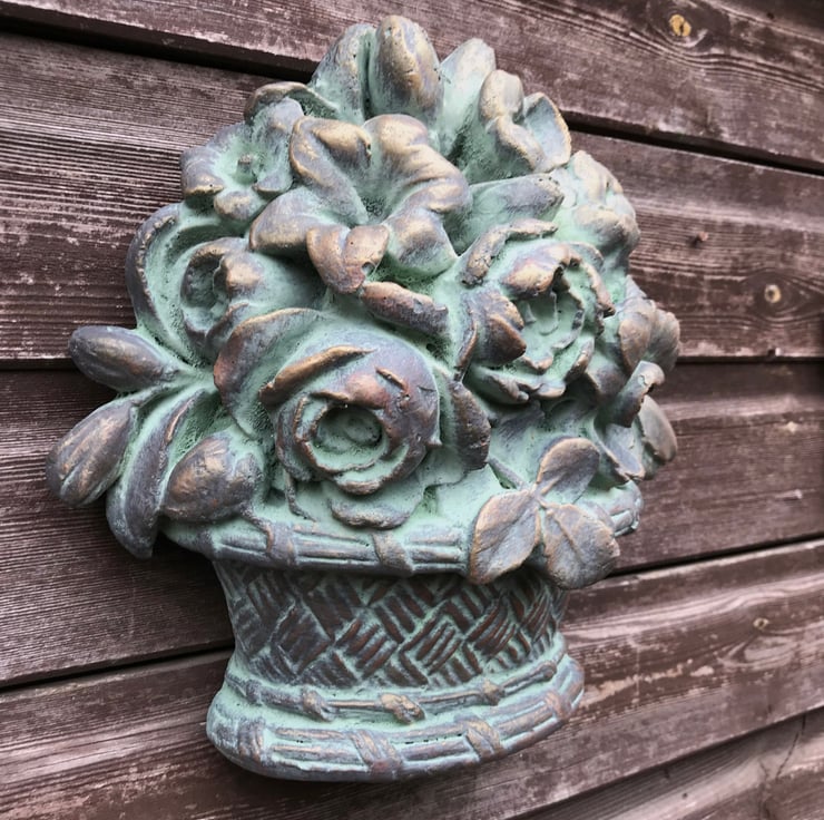 Each of our Basket of Flowers wall plaques are hand cast at our Sussex workshop in frost proof reconstituted stone with an aged sandstone or bronze colour finish.