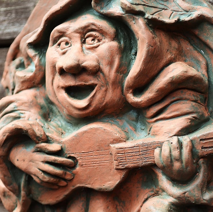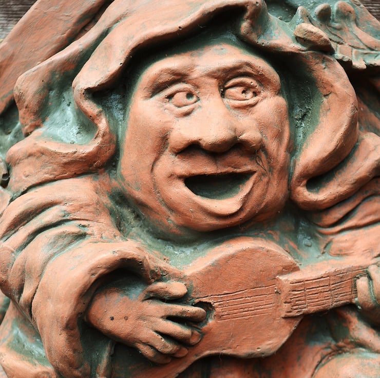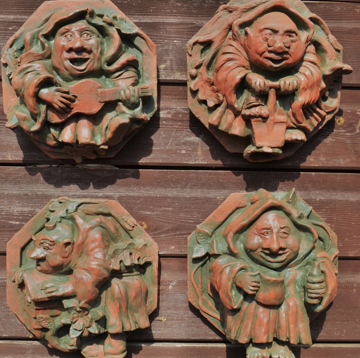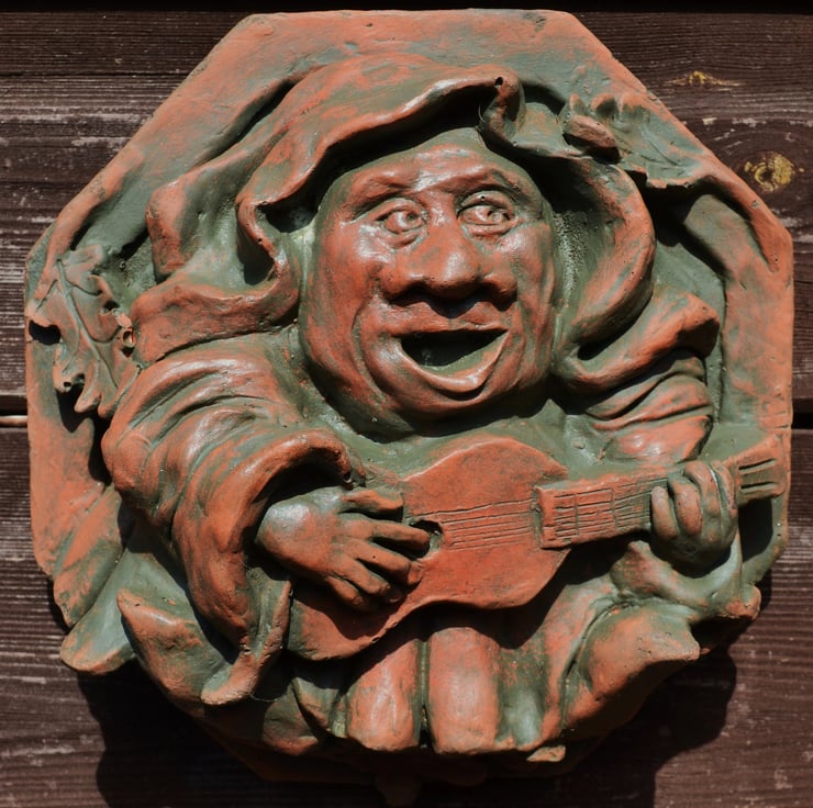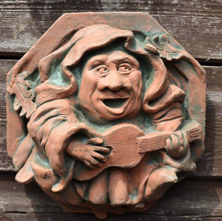 Each of our Guitar Player Monk plaques are hand cast at our Sussex workshop in frost proof reconstituted stone with an aged terracotta colour finish. Part of our 'Priory Monks' collection.