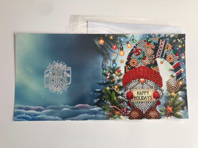 “Gems” have been placed manually one by one to create this amazing Christmas card- Happy Holidays. Worked for up to an hour on this card.