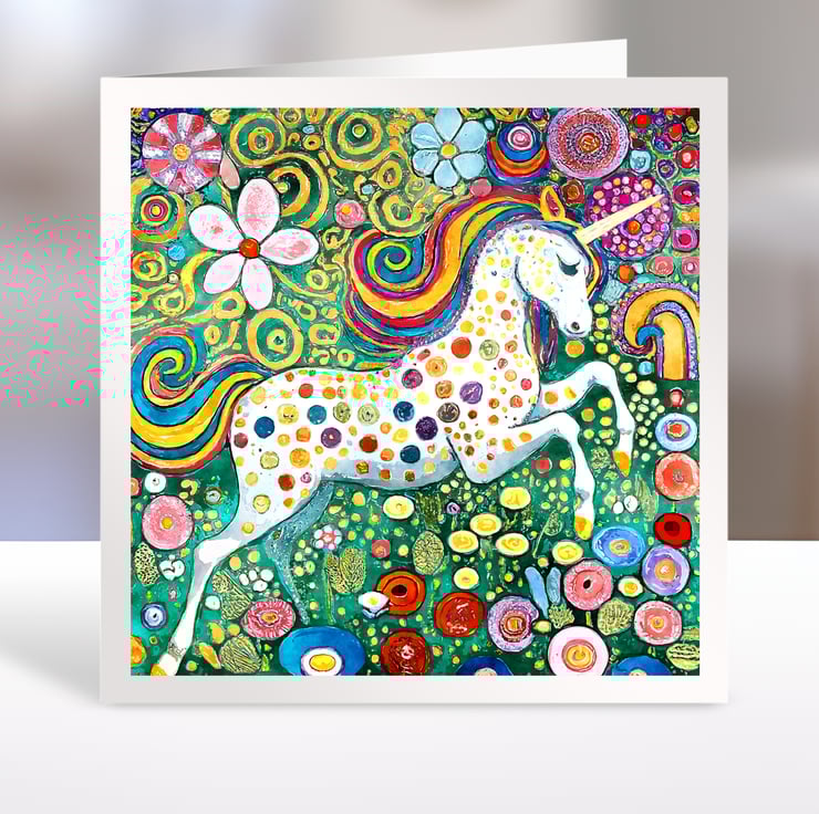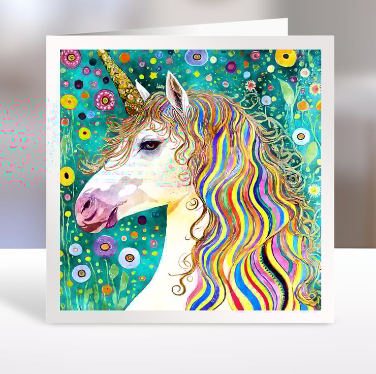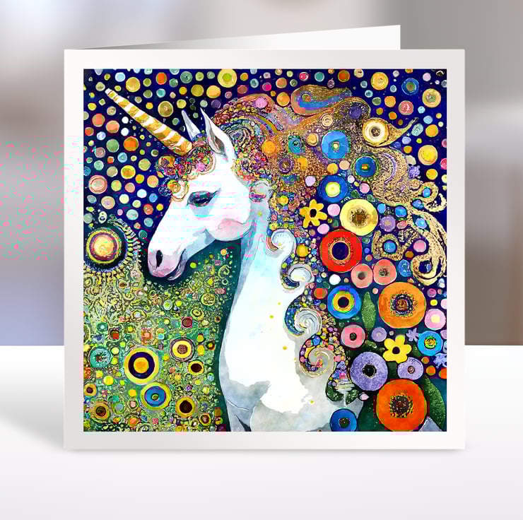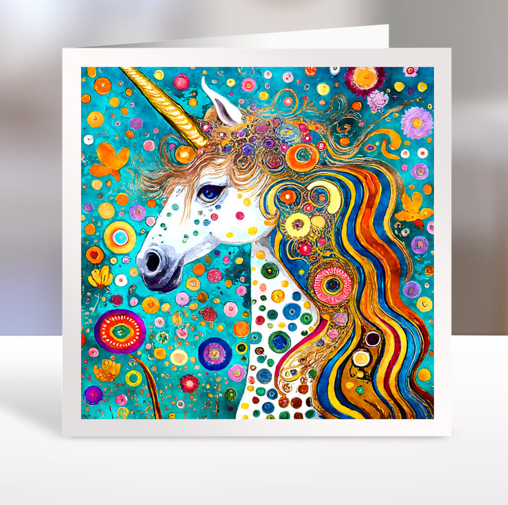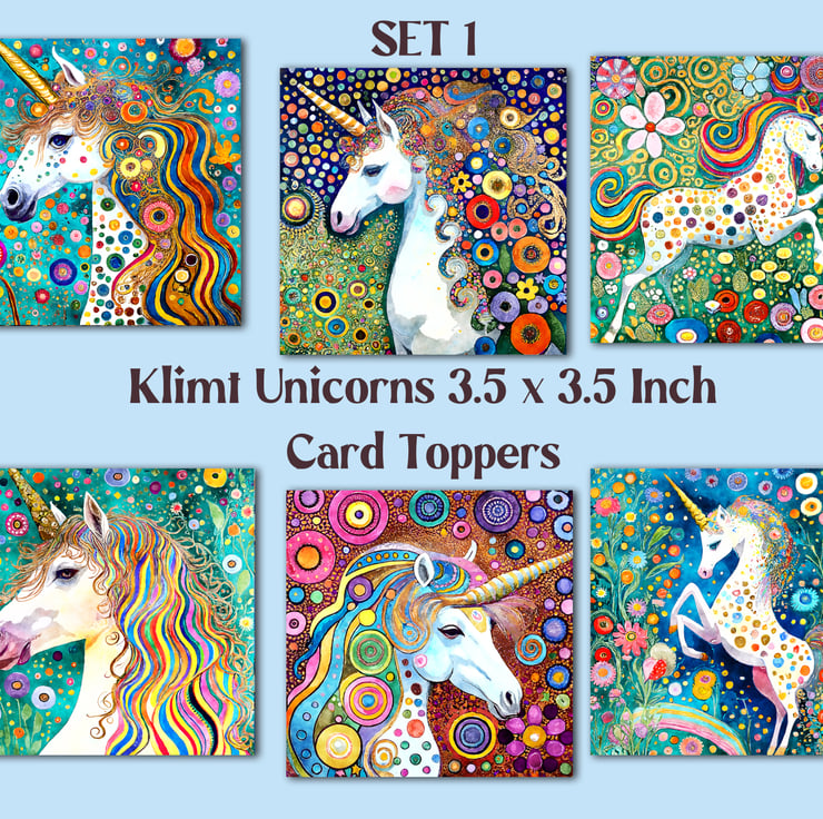 A set of six 3.5 inch square card toppers - Klimt Cats - Set 1 of 2 - Klimt style card toppers with unicorns