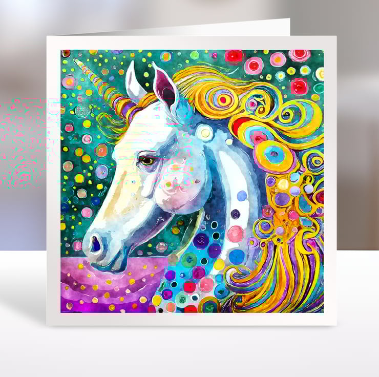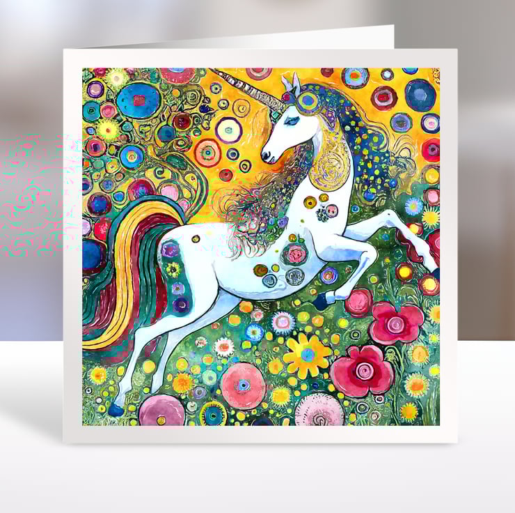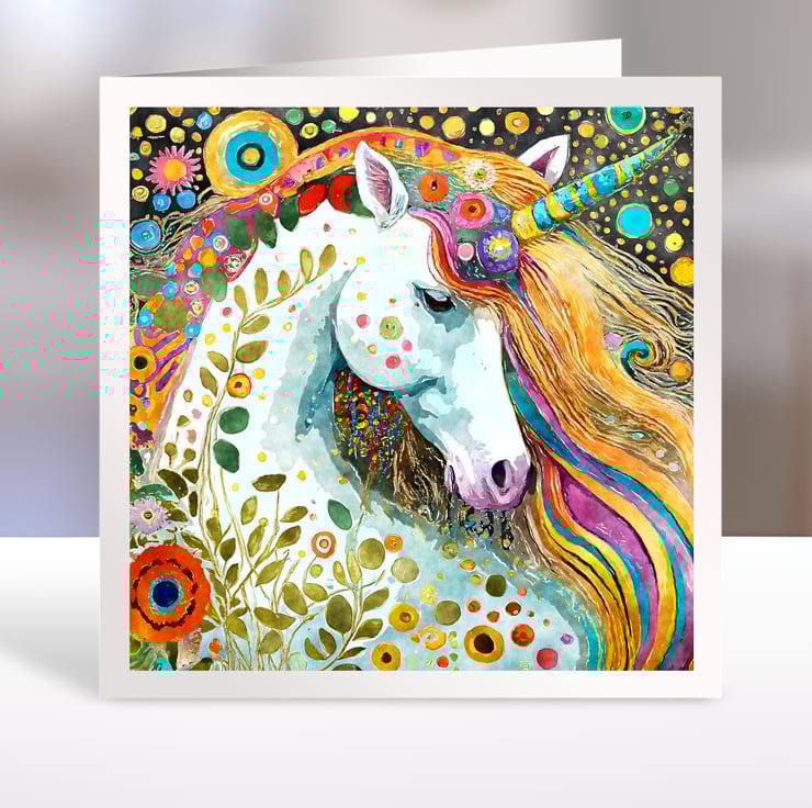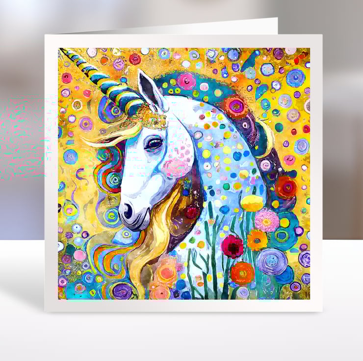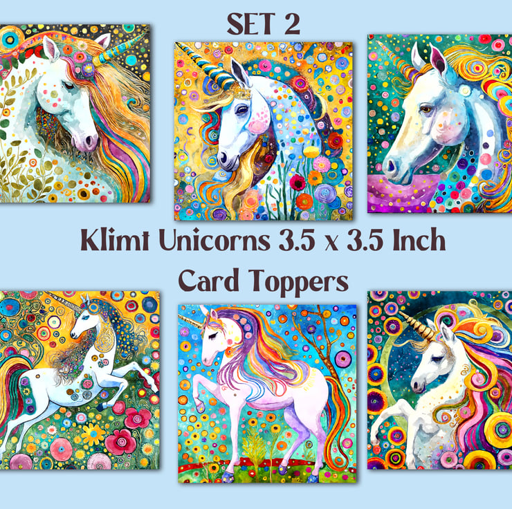 A set of six 3.5 inch square card toppers - Klimt Cats - Set 2 of 2 - Klimt style card toppers with unicorns