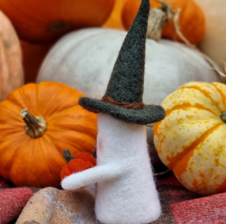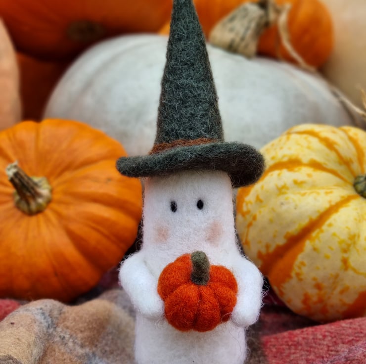 Wooly witchy, needlefelted ghost looking to haunt her forever home.