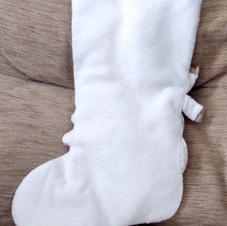 The back of the stocking is plain white and a white felt inner lining is included, to cover the stitches that are inevitably created on the reverse of the front, while also giving the stocking a little more strength and durability.