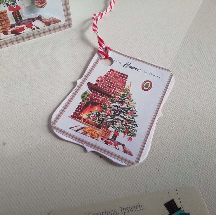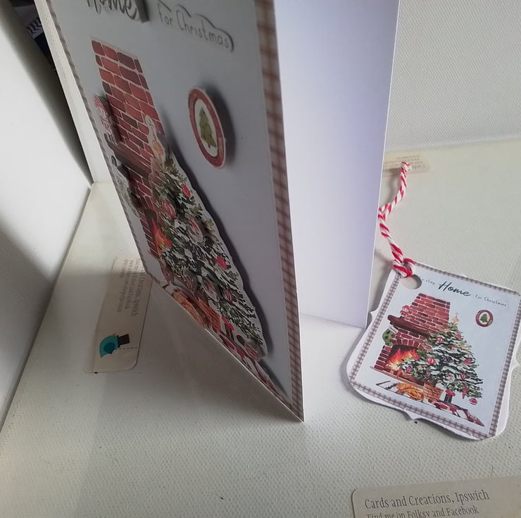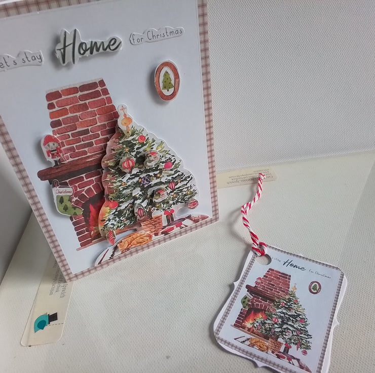 A true homely Christmas feel to this card with the wording on the front saying 'let's stay home for Christmas' .