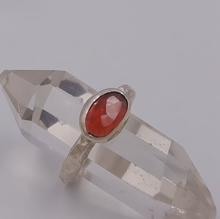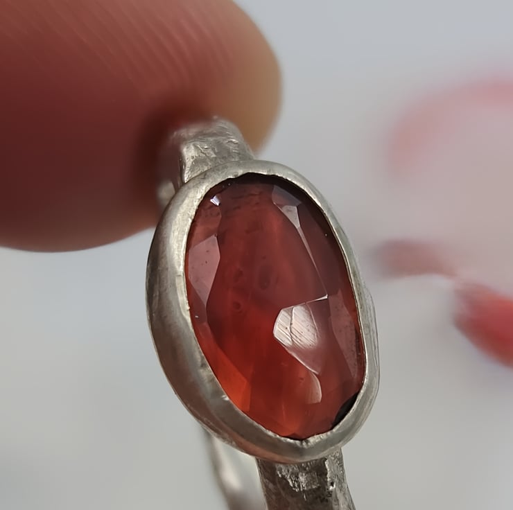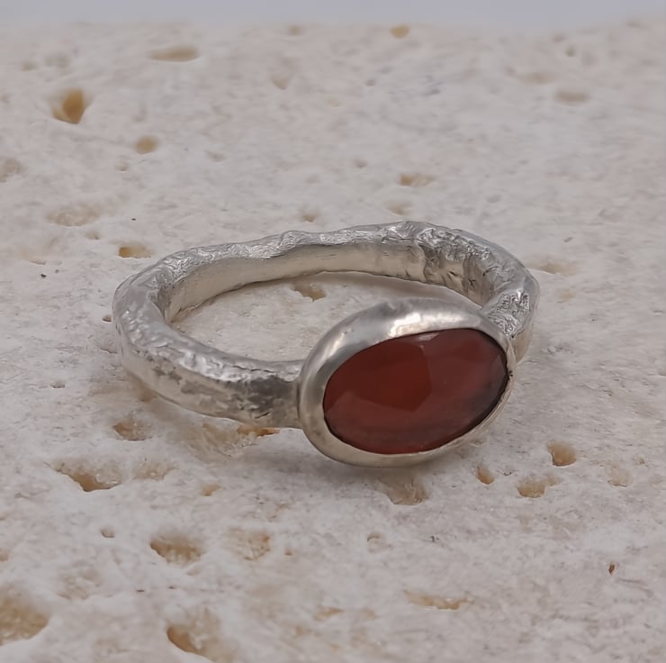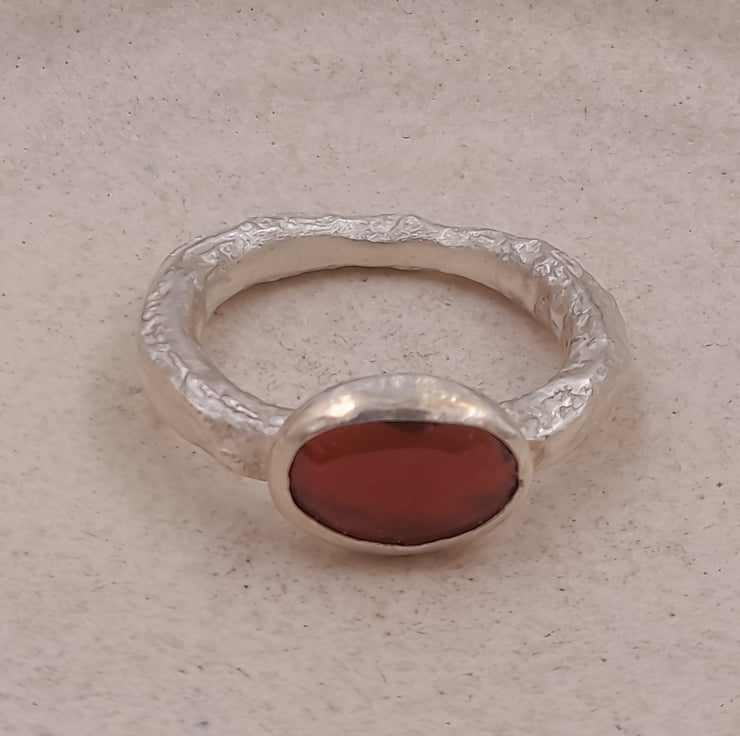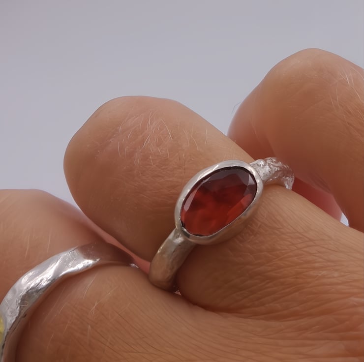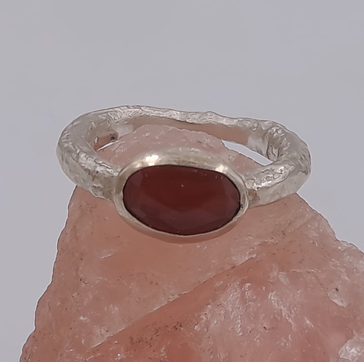 Textured Silver Ring with Faceted Garnet Slice : Size K