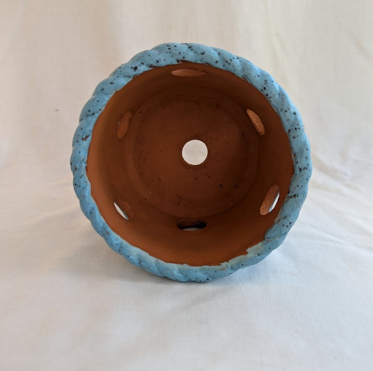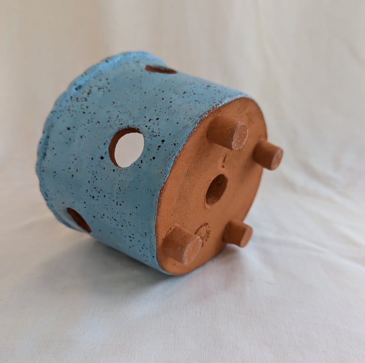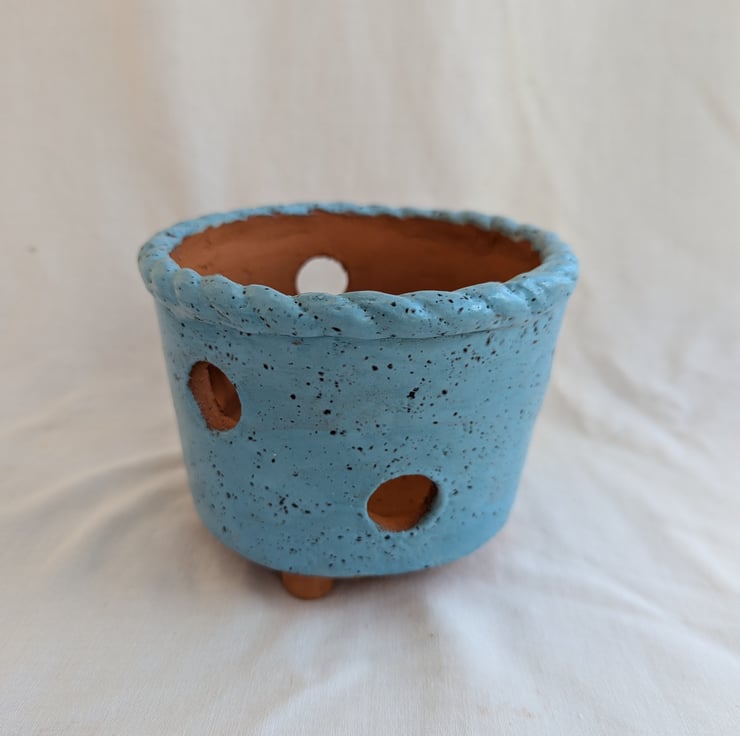 Original handmade glazed terracotta pots with holes made especially for orchids.
