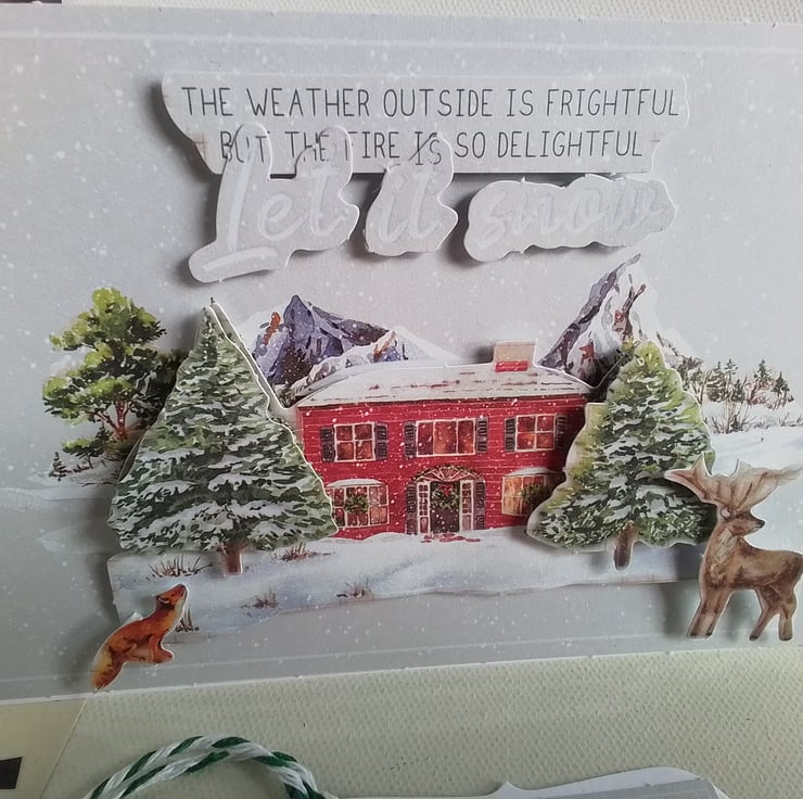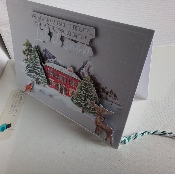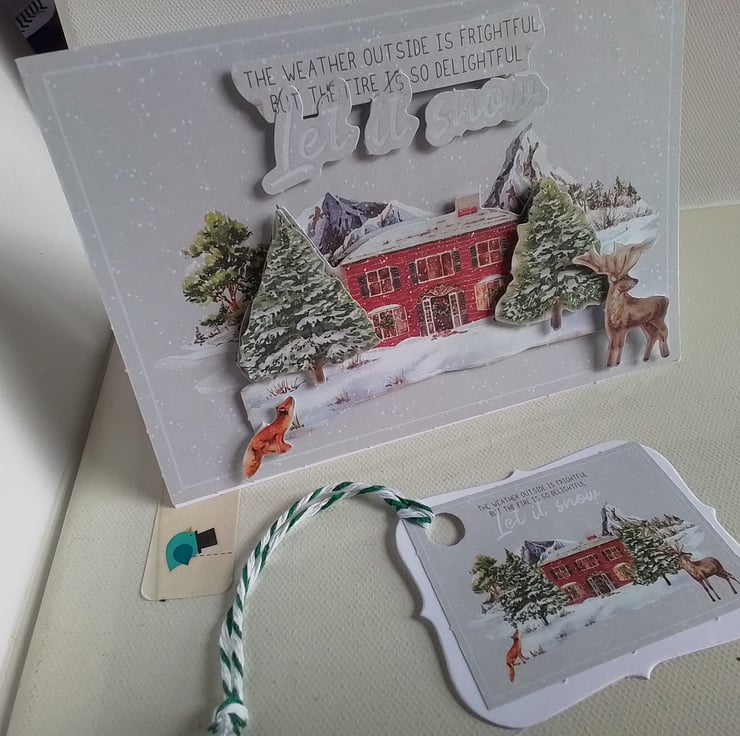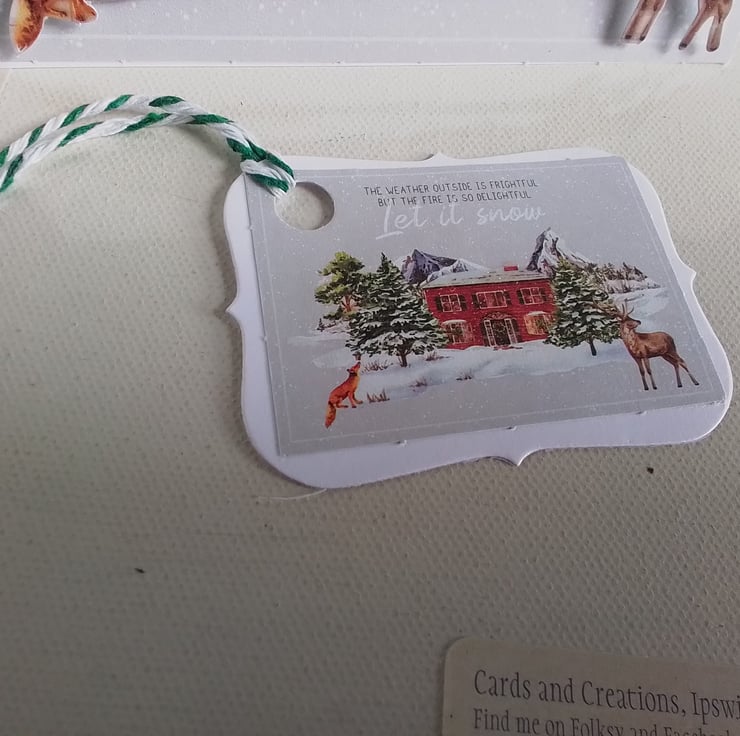 Christmas card and gift tag set with an outdoor snowy scene. Complete with reindeer.
