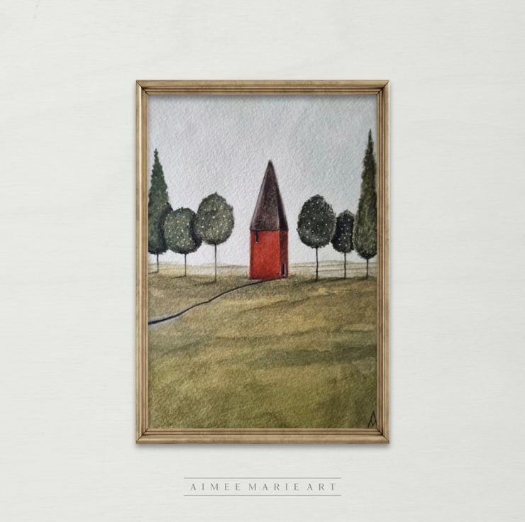 A small original watercolour painting in a palette of neutrals, greens & red. I paint with high quality Winsor & Newton watercolours on professional 300gsm watercolour paper. All new additions to my shop are one of a kind original paintings.