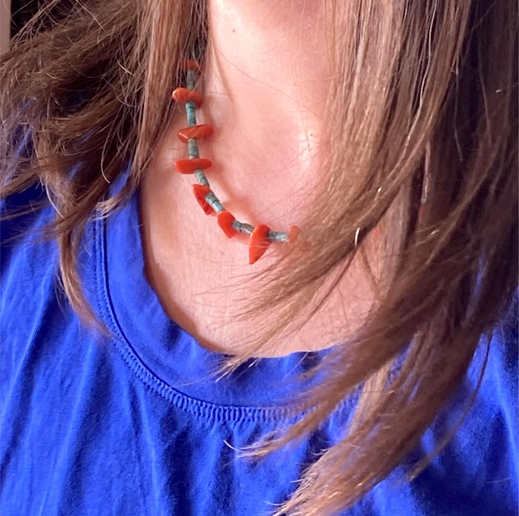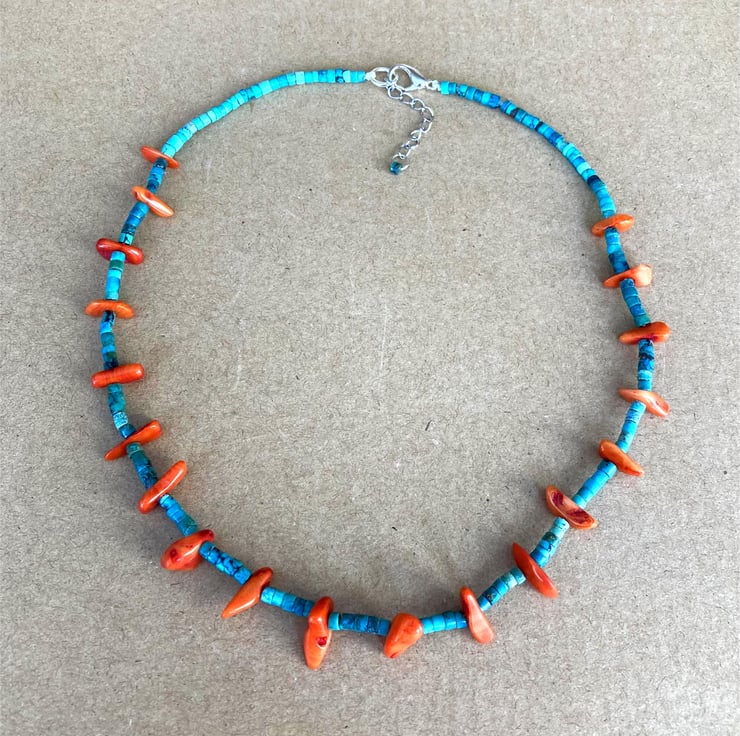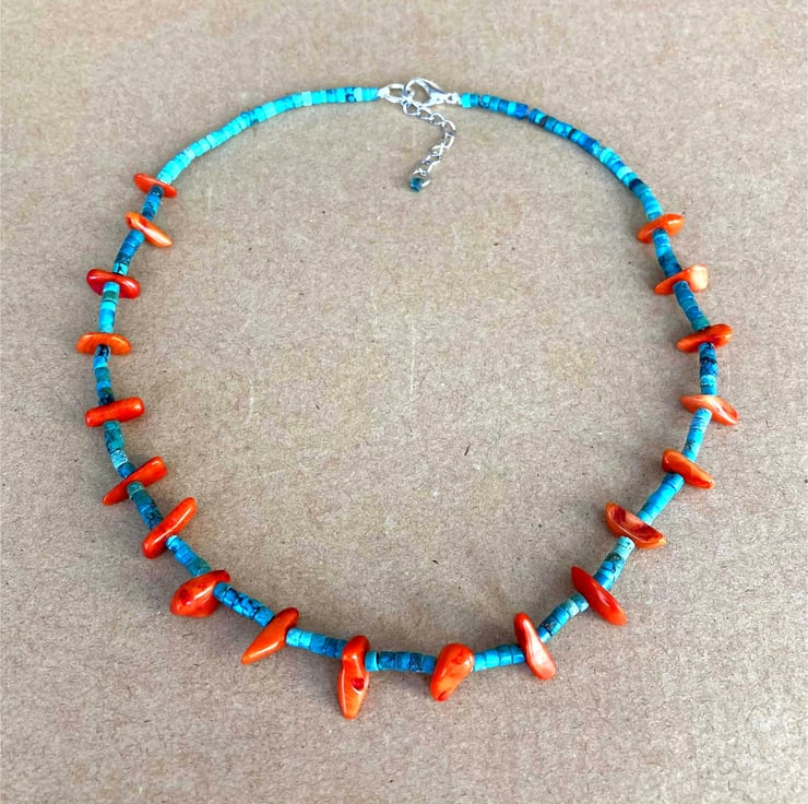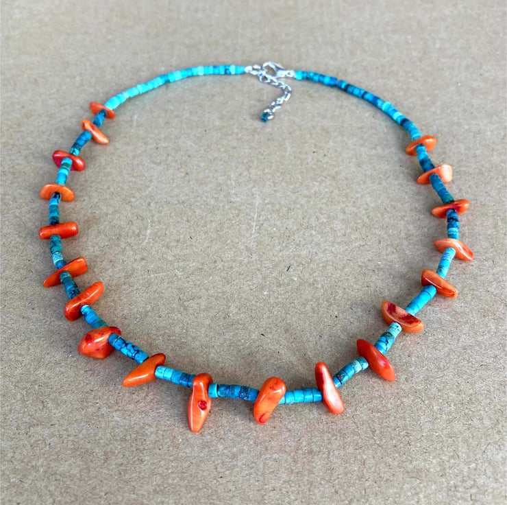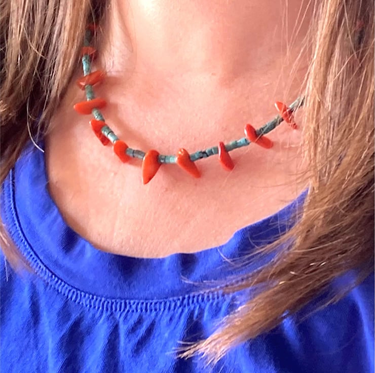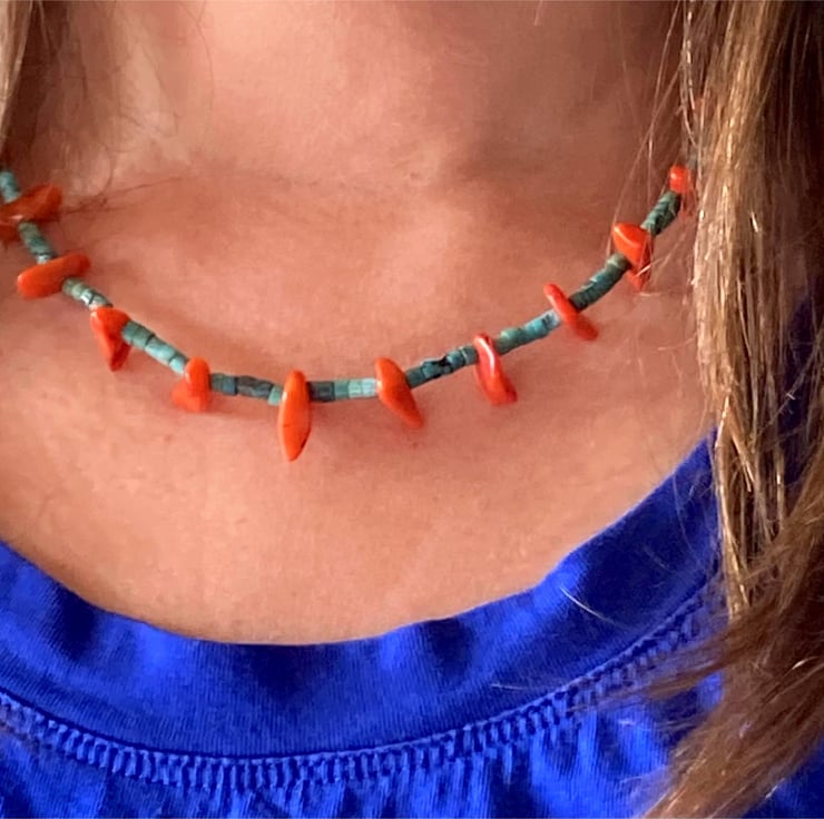 Irregular Shapes Coral Chip Beads And Turquoise Tube Beads Handmade Necklace - Gift - Christmas Gift - Wedding Jewelry - Birthday Gift