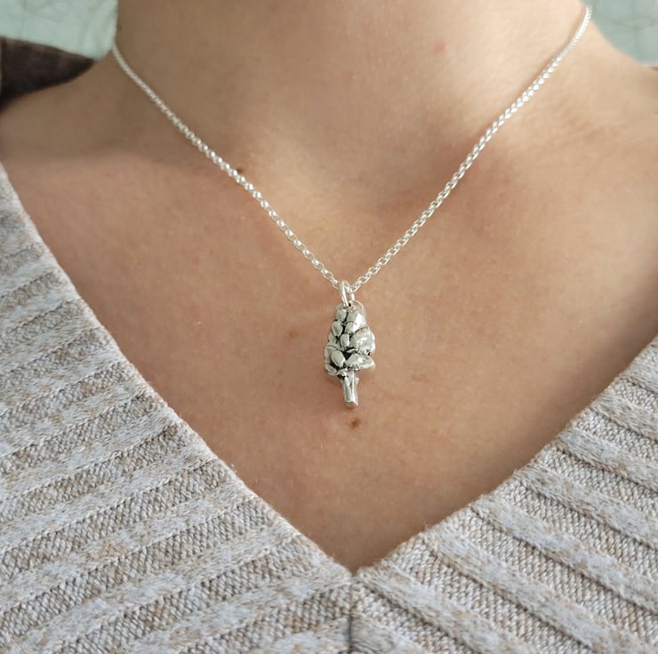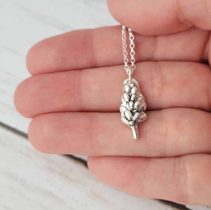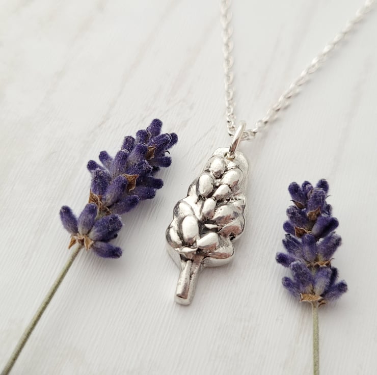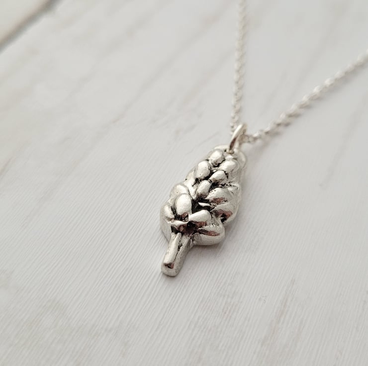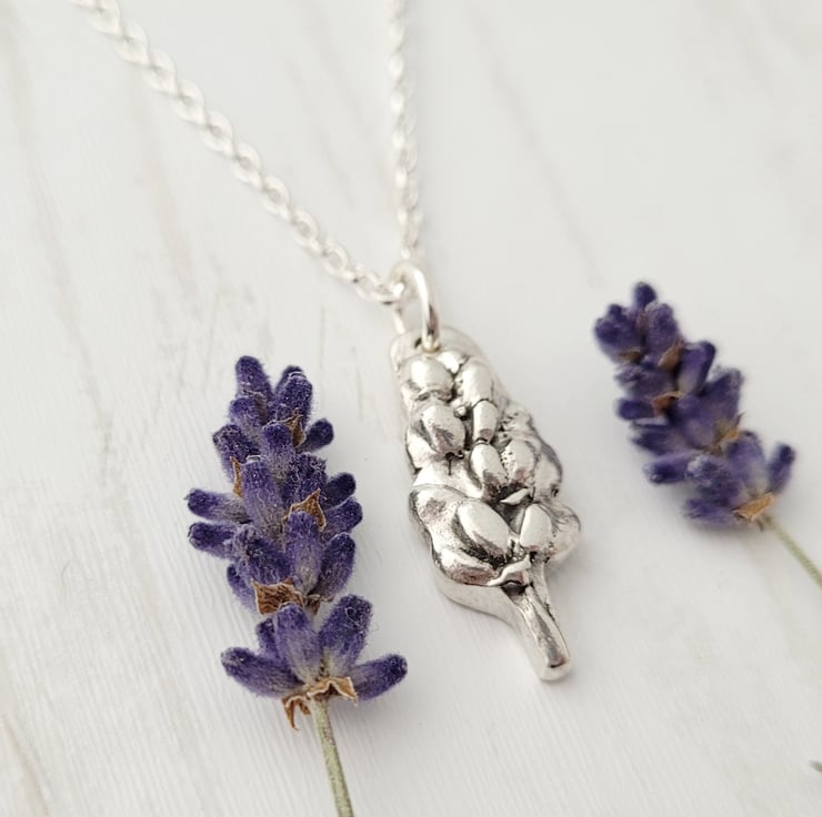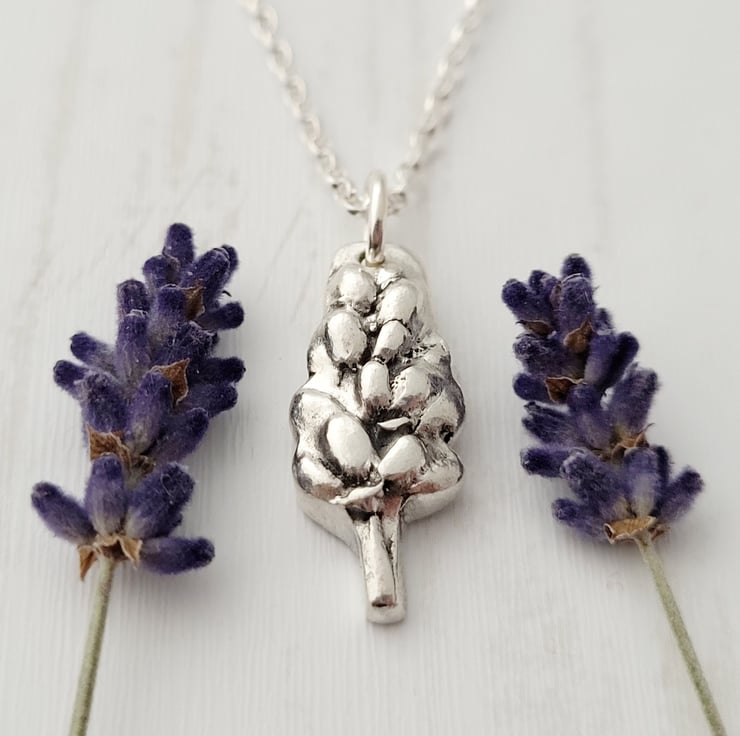 This beautiful unique lavender flower sprig botanical pendant features an actual flower stem of lavender from my garden and is handcrafted in sterling silver.