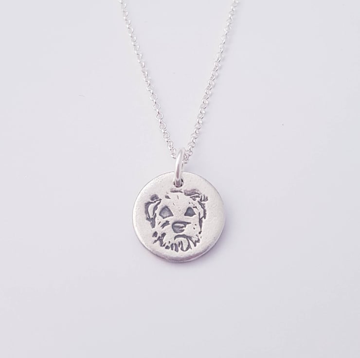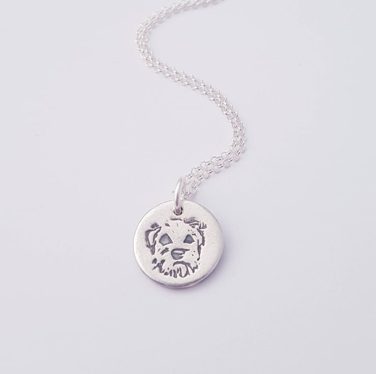The dog pendant features my unique Border Terrier design and is handcrafted from sterling silver.