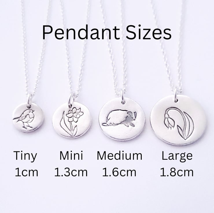 The tiny forget me not pendant is very dainty and measures approx 1cm at the largest point.