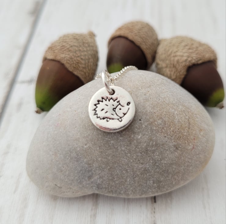 This lovely tiny sterling silver Hedgehog animal pendant is made from sterling silver clay & features my unique and very cute hedgehog design.