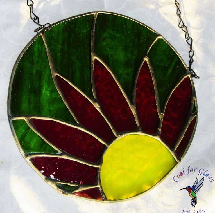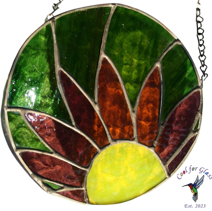 Add a touch of floral elegance to your window with this exquisite purple flower sun catcher. This hand-made piece captures the essence of nature’s beauty through its vibrant hues and stained glass artistry. The central yellow disc glows like a warm summer sun when hit by light, while the surrounding purple petals bloom against any backdrop, creating an enchanting play of colours in your space. Perfect for adding colour to your home or as a thoughtful gift for garden enthusiasts and art lovers alike!