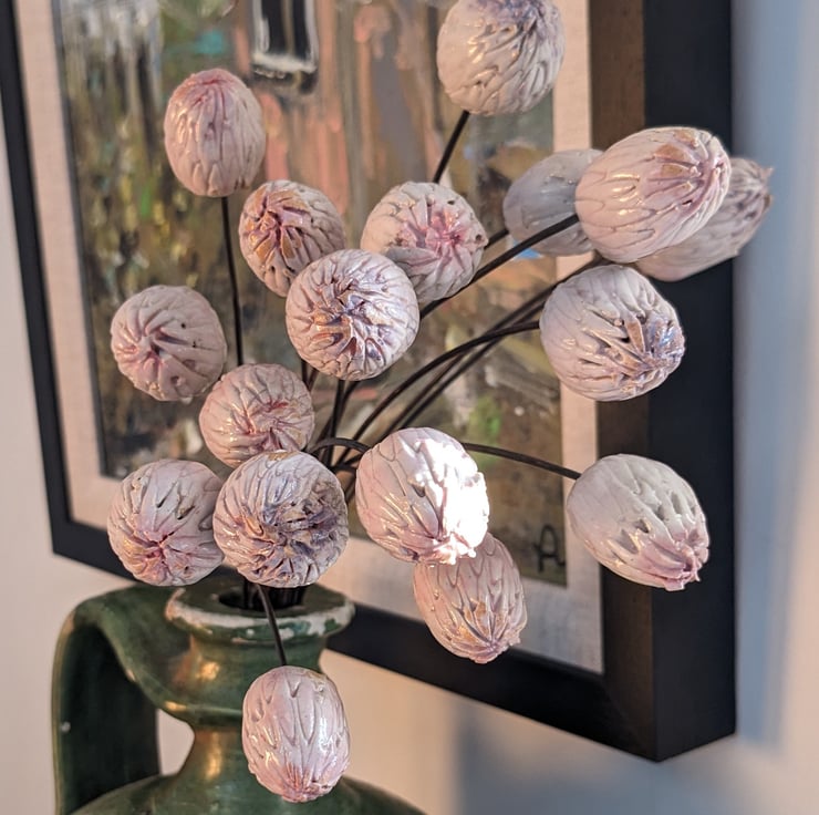 Please note, the stems will arrive with a bend towards the base (for postage), requiring just gentle pressure either side to straighten it. Always handle using the wire and not the ceramic flower.