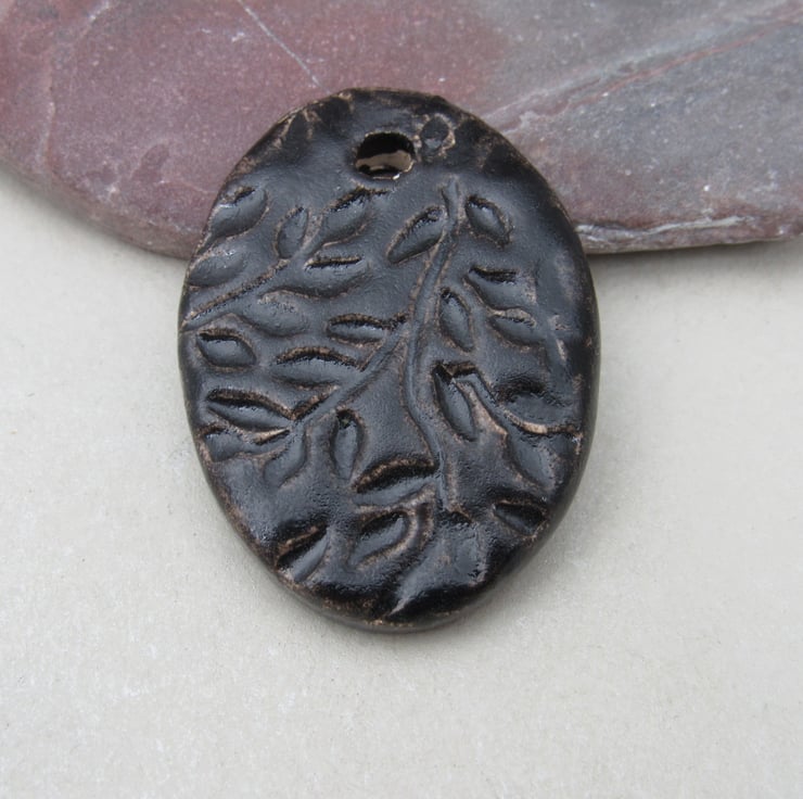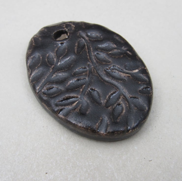 Large Dark Earth Leaf Sprig Ceramic Pendant