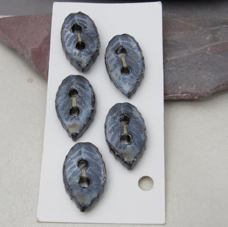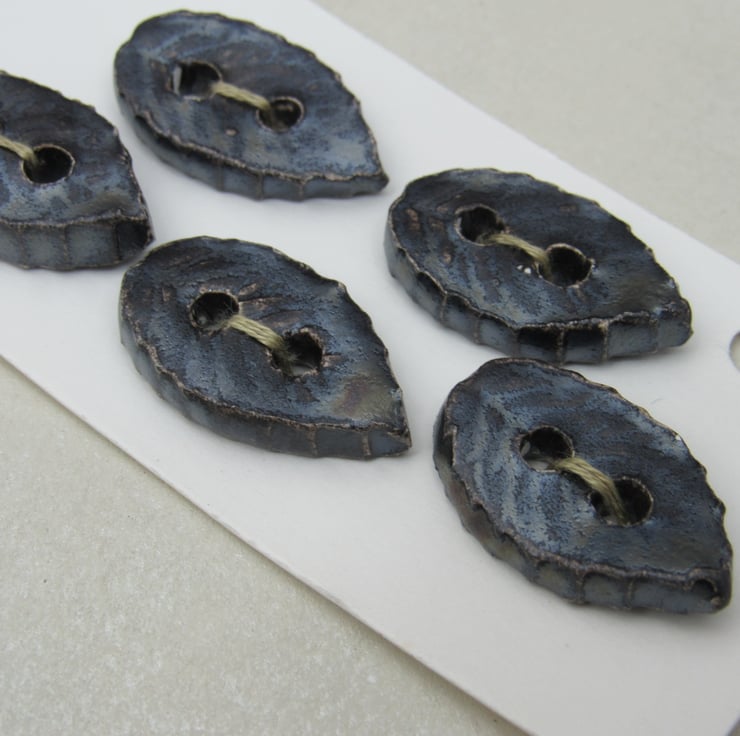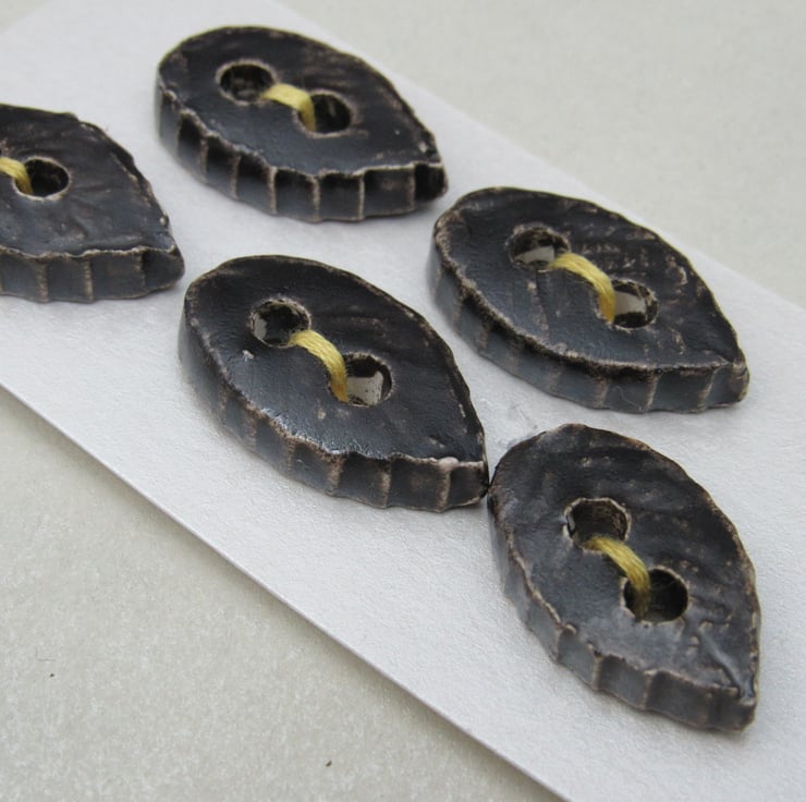 5 Small Leaf Shaped Dark Earth Ceramic Buttons