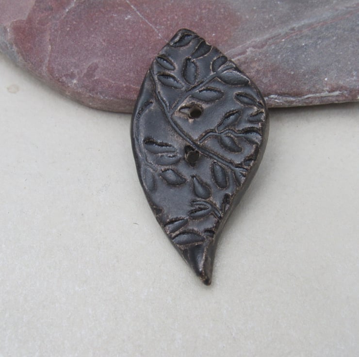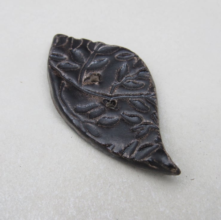 Medium Dark Earth Leaf Shaped Ceramic Button